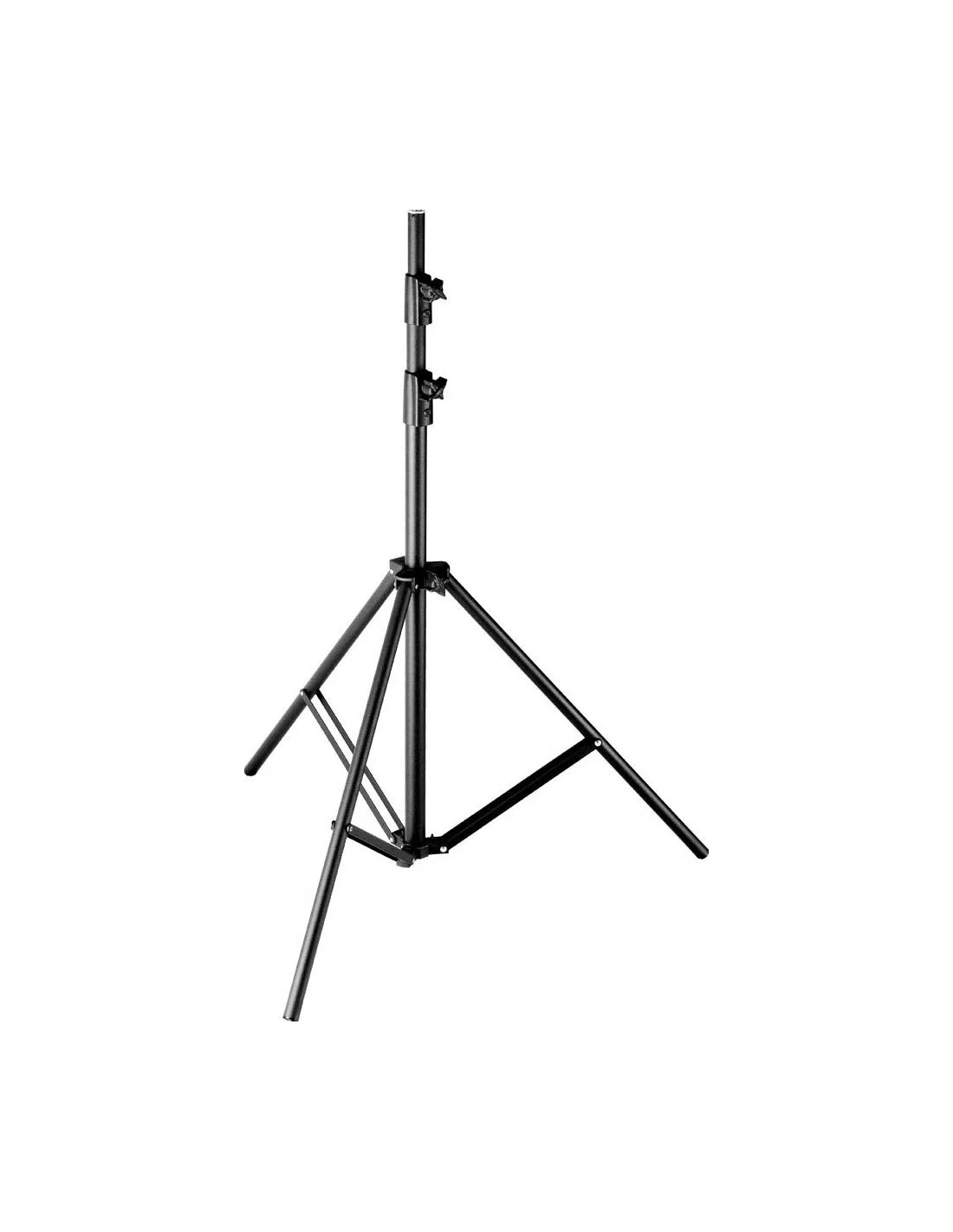 Lo stativo con cuscinetto d'aria 260T della Godox è una soluzione leggera che raggiunge un'altezza di 2.6m e si piega a 1m per il trasporto. Il cuscinetto d'aria protegge l'attrezzatura da urti e danni. Questo stativo ha tre sezioni ed è costruito in ferro e alluminio.