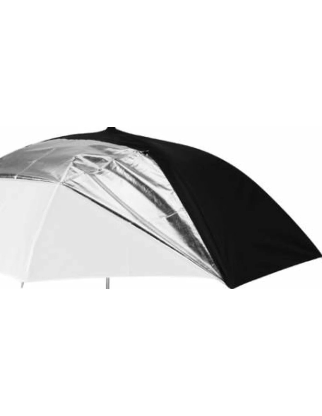 Questo Ombrello UB-006 riflettente Dual-Duty da 101 cm di diametro si adatta agli scatti di ritratti e alla fotografia di prodotto. Il riflettore è un ombrello bianco con una copertura esterna reversibile nera e argento.