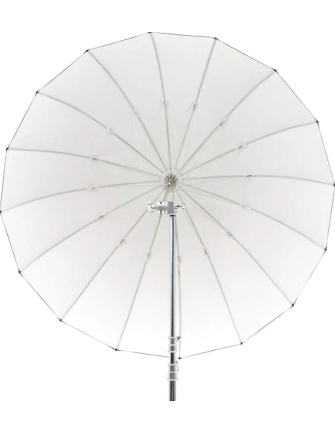L'ombrello parabolico bianco con un diametro di 165 cm della Godox è un ombrello profondo che consente di spostare la sorgente luminosa a cui è attaccato in avanti o indietro lungo l'asta per "focalizzare" la luce. La forma parabolica fornisce il controllo direzionale, mentre il suo interno bianco fornisce un morbido rimbalzo senza alcuna dominante di colore.