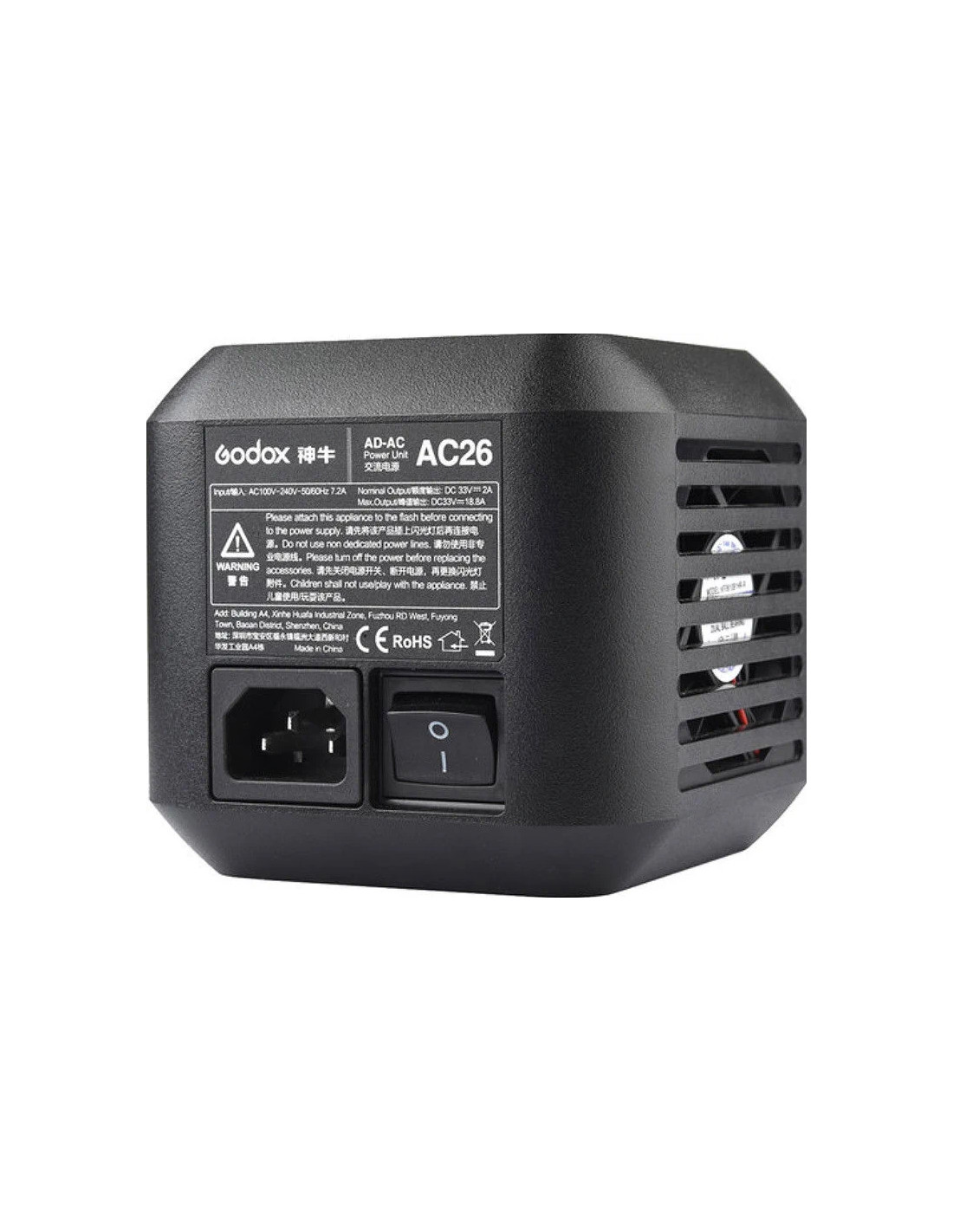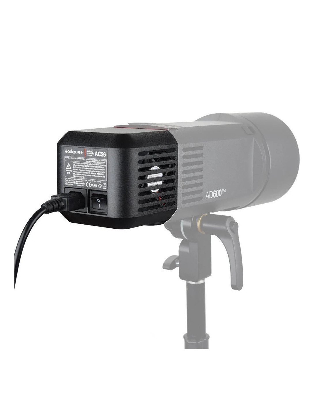 Progettato specificamente per il flash esterno AD600Pro Witstro, questo AC-26 Adattatore CA di Godox ti consente di collegare la luce a una presa a muro invece di alimentarla con la sua batteria ricaricabile. Ti offre una durata praticamente illimitata, rendendolo un accessorio ideale per lunghe riprese in studio. Il prodotto è composto dall’adattatore stesso, che va sul retro dell’AD600Pro nello slot della batteria, e da un cavo per il collegamento a una presa di corrente. L’unità adattatore accetta 100-240 V CA a 50 o 60 Hz e dispone di un interruttore di accensione / spegnimento per un facile utilizzo.