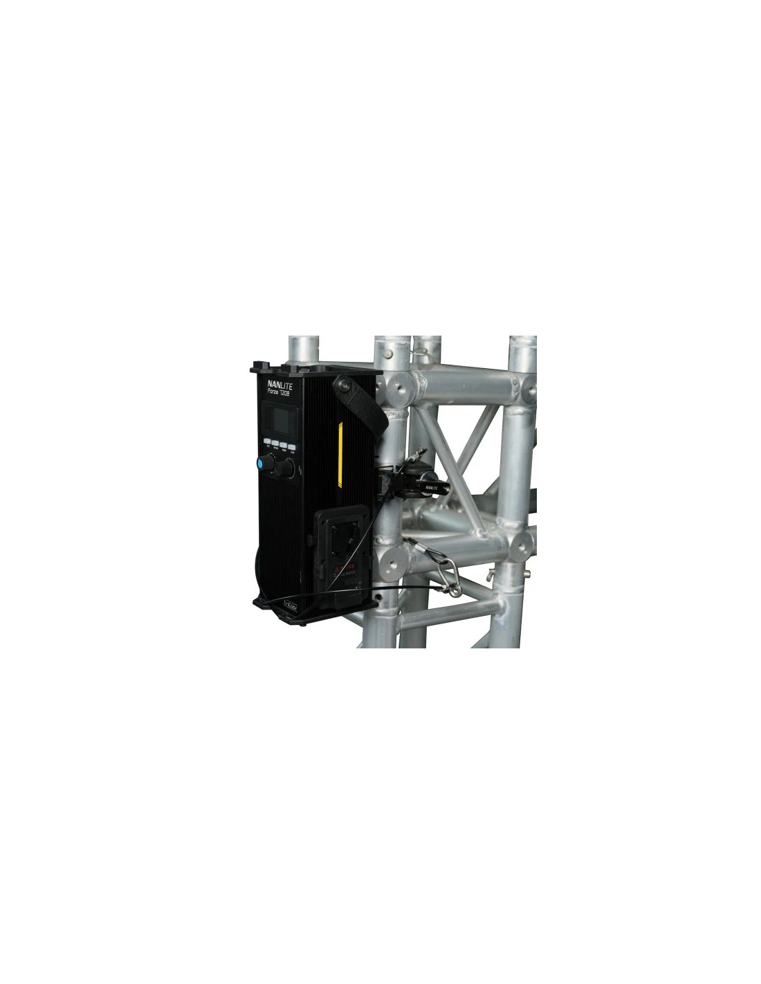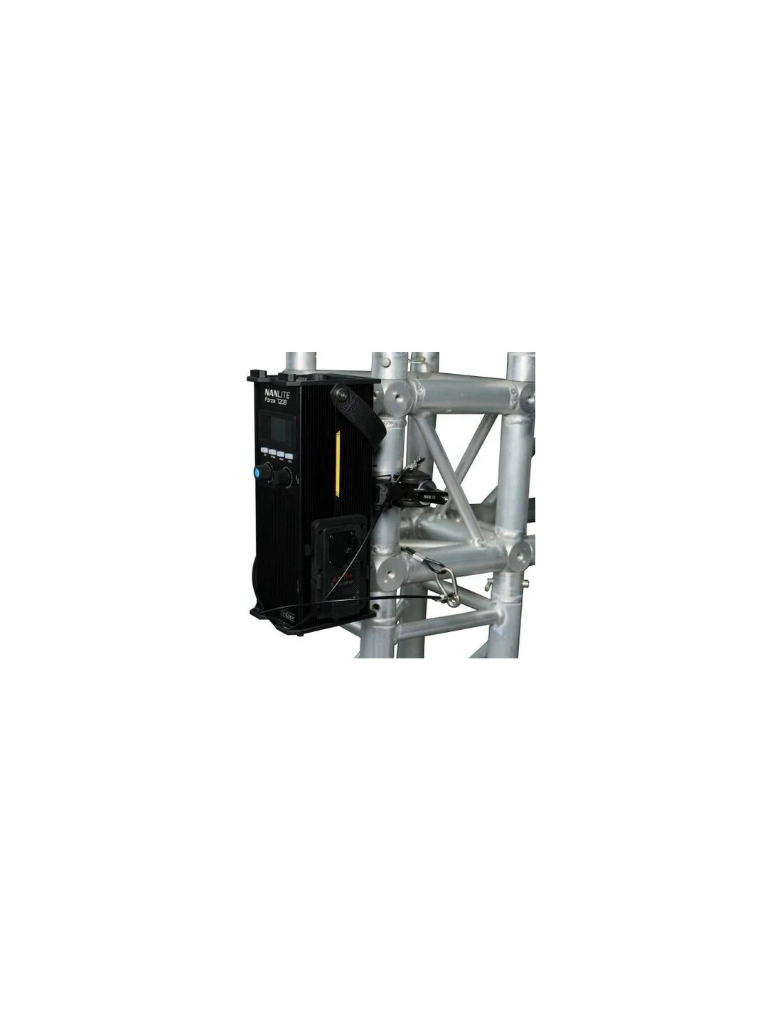Nanlite ASCPQRFZ è una clamp a sgancio rapido che consente di montare in modo semplice e sicuro l'unità di controllo di un Forza 720, 720B, 500 II, 500B II, 300 II o 300B II su uno stativo per luci o un altro tipo di oggetto, e può essere fissata a barre rotonde o quadrate. Si tratta della stessa clamp in dotazione a questi apparecchi. È costruita in modo durevole ed è dotata di un'impugnatura allungata su un solo lato che offre un'ampia leva e facilita il serraggio e l'allentamento. L'impugnatura, se posizionata troppo vicino a un oggetto, è possibile tirarla verso l'esterno per sganciarla, quindi ruotarla nella posizione desiderata e reinserirla in modo da poterla girare con facilità. È dotata di un punto di connessione dedicato, progettato appositamente per tenere saldamente in posizione l'unità di controllo Forza Nanlite.