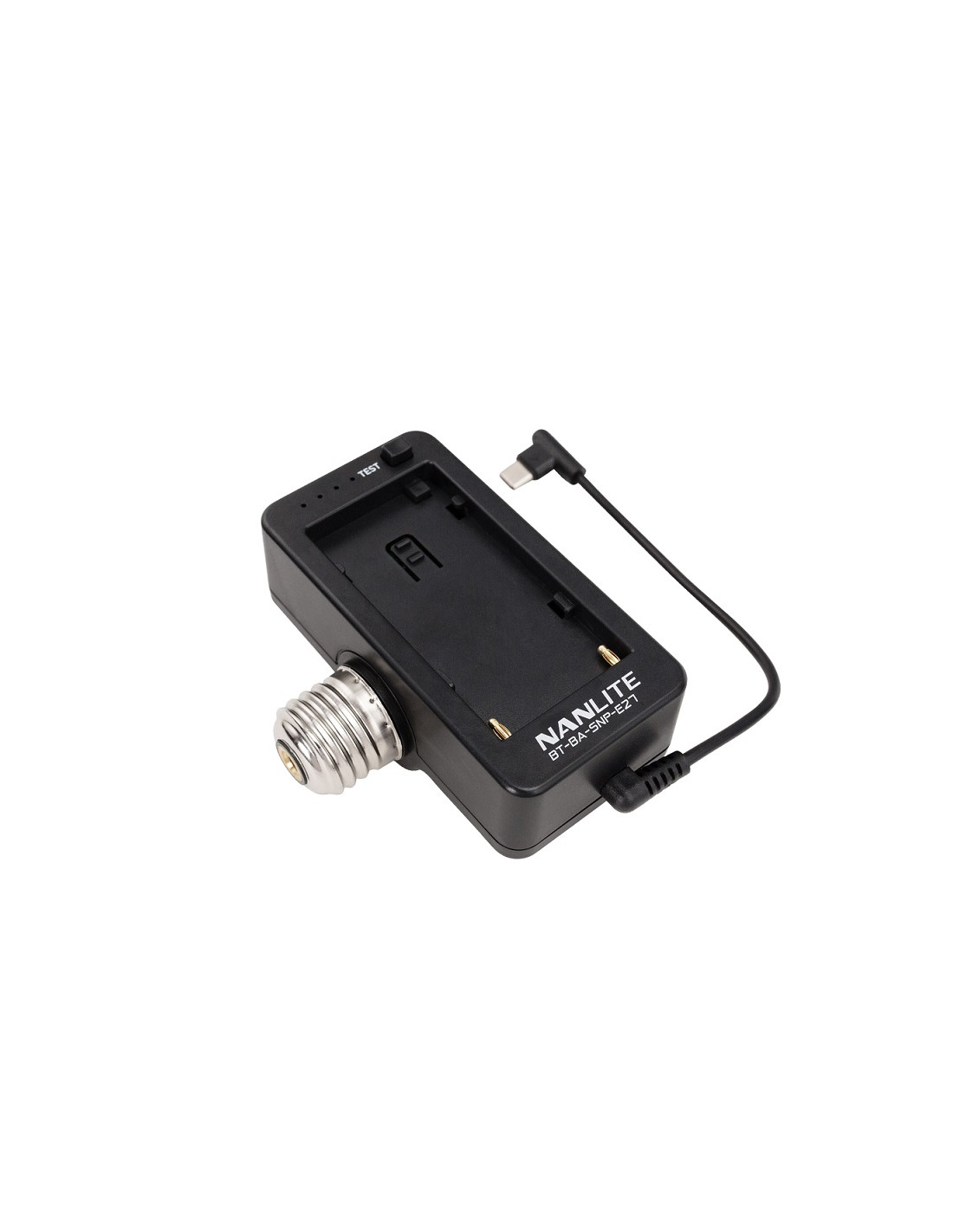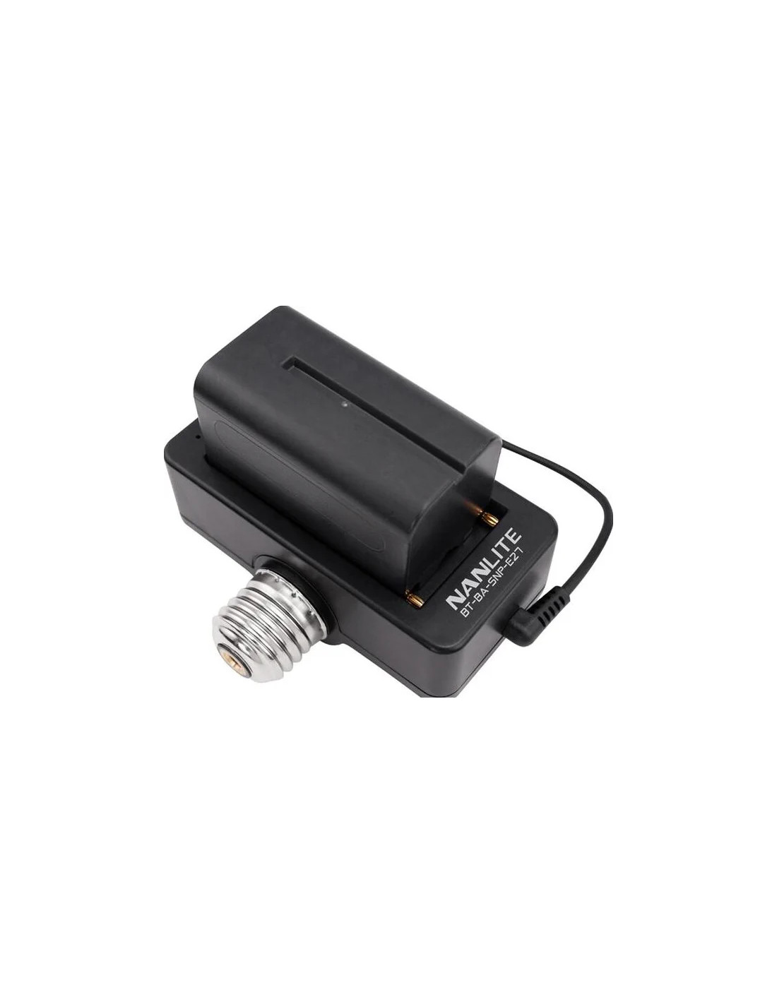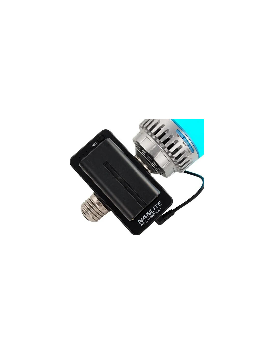 Dotato di una presa E27 compatibile con PavoBulb 10C per un facile collegamento semplicemente avvitando. Viene fornito con un portabatteria NP-F e un cavo di alimentazione di tipo C che può alimentare l'apparecchio per lunghi periodi. Ha un connettore a vite con presa E27 e un ricevitore con attacco 1/4-20 che permette facilmente di collegarlo a supporti e lampade per uso domestico.