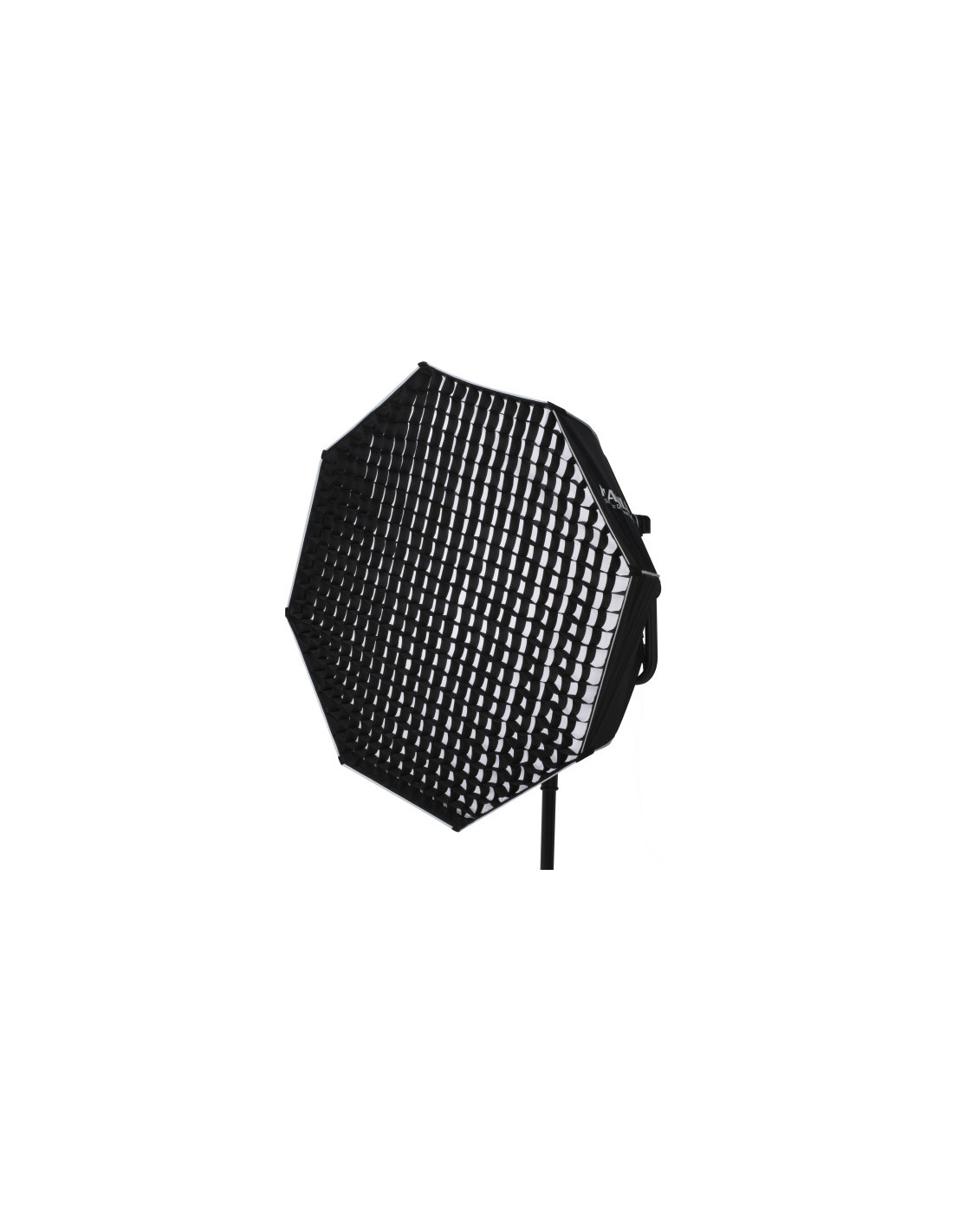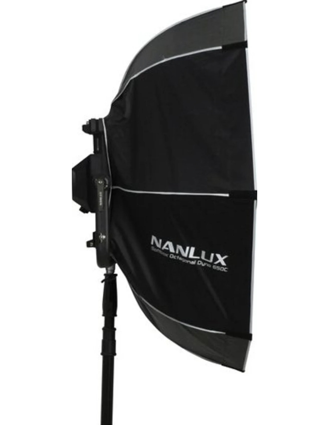 Progettato specificamente per il proiettore Dyno, l’Octa Softbox da 1320,0 mm per Dyno 650C di Nanlux ammorbidisce l’uscita e abbassa il contrasto dei LED luminosi della luce. Le grandi dimensioni del modificatore conferiscono una qualità di luce avvolgente (specialmente se usata da vicino). Un vantaggio sono i riflettori dall’aspetto naturale negli occhi del soggetto. L’Octa Softbox ha diffusori anteriori e interni rimovibili e un interno argento per massimizzare la resa. È inclusa una griglia per eliminare la fuoriuscita di luce e consentire il controllo direzionale per consentire l’illuminazione selettiva.