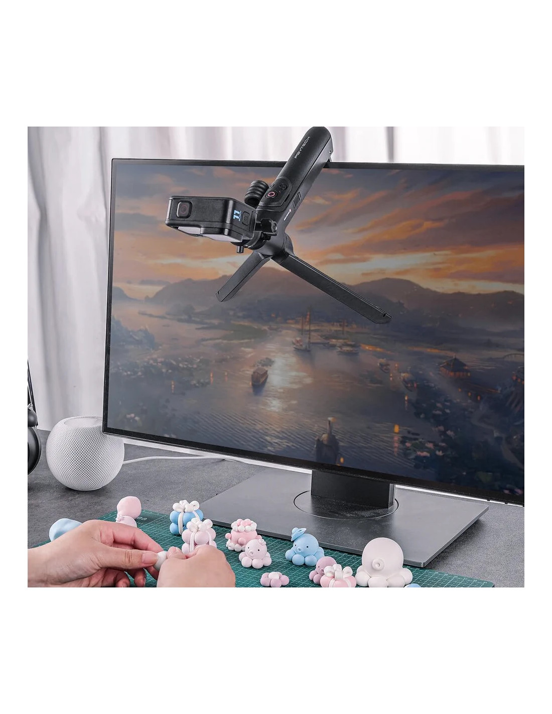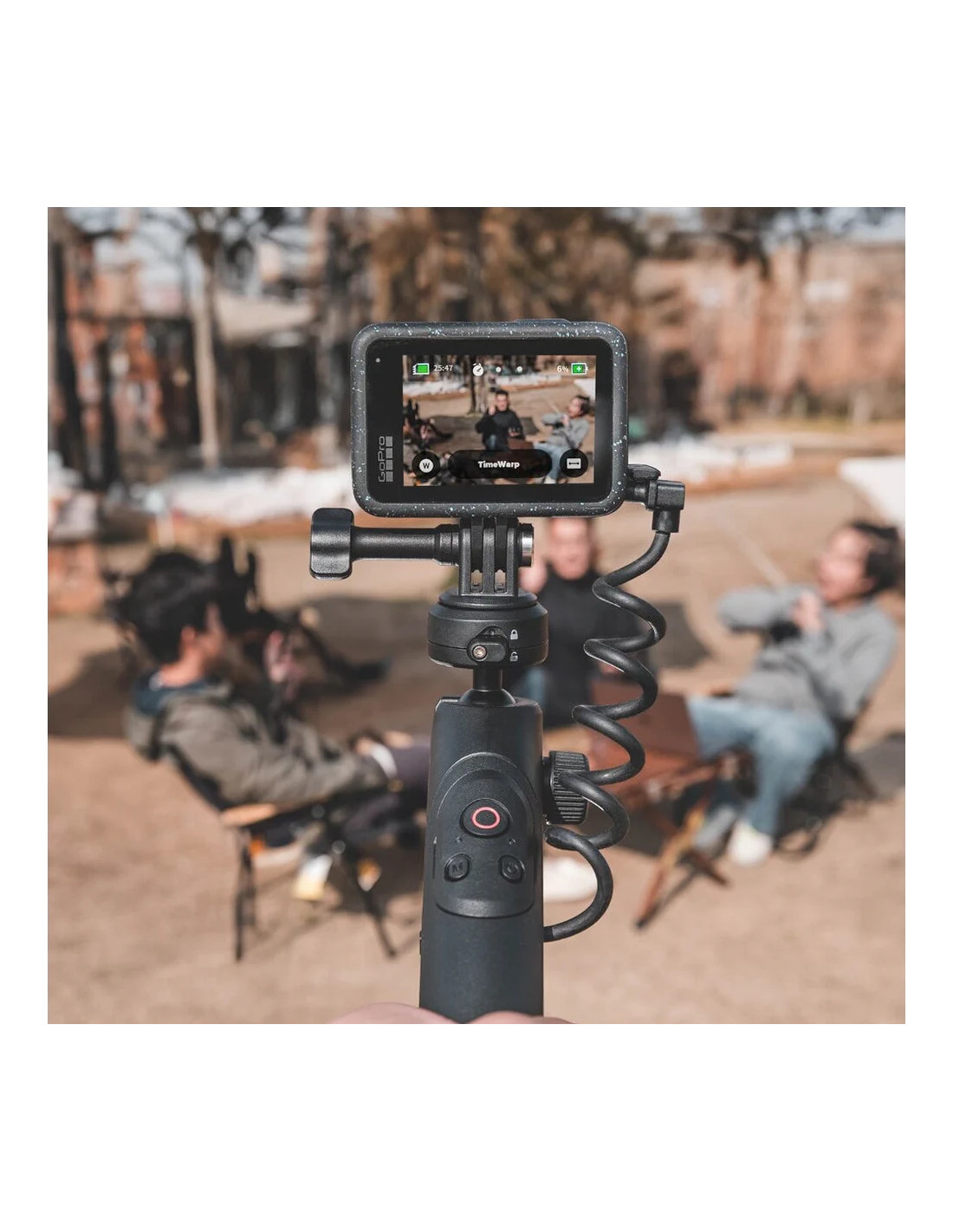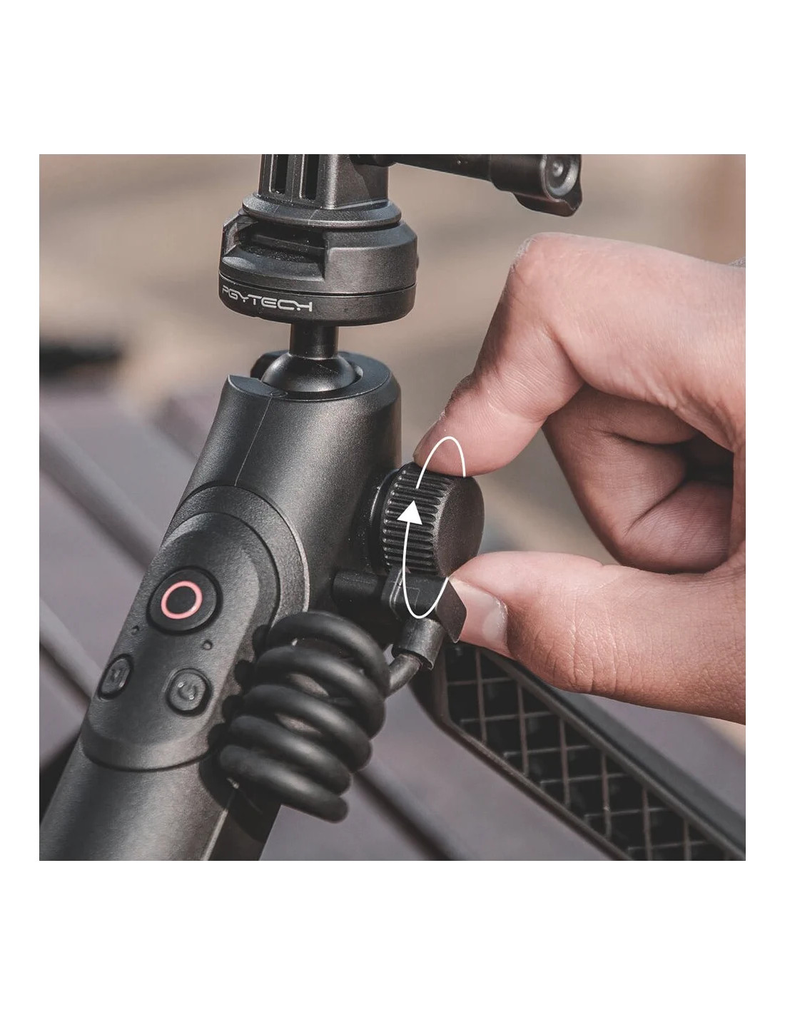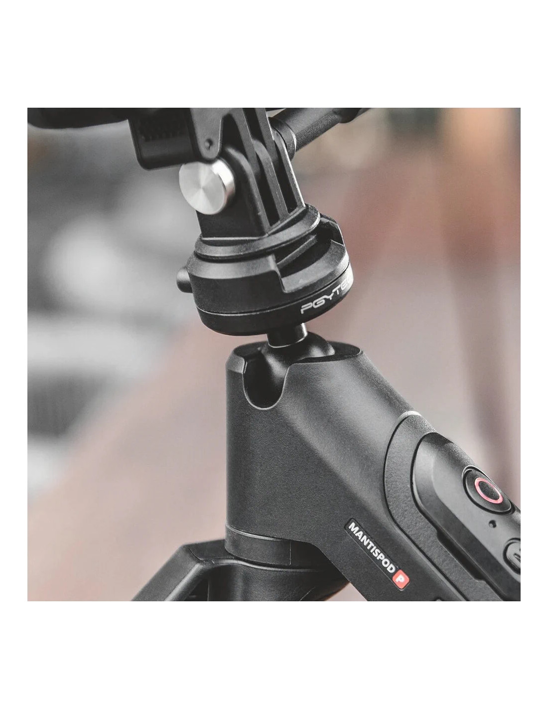 L'impugnatura offre le modalità Mantis, Handheld, Briefcase e Tripod per una maggiore flessibilità creativa, mentre il telecomando standard multifunzionale consente un facile utilizzo durante l'acquisizione di foto e la registrazione di video. L'innovativo design del gancio facilita le posizioni di sospensione versatili per catturare contenuti da una moltitudine di angolazioni quando si utilizza l'impugnatura in modalità Mantis. Il design cardanico a sfera a 360° offre funzioni di rotazione che consentono agli utenti di passare rapidamente dalla ripresa orizzontale a quella verticale con facilità. L'installazione in un'unica fase è aumentata dal design a doppia chiusura del sistema di sgancio rapido brevettato dell'unità.