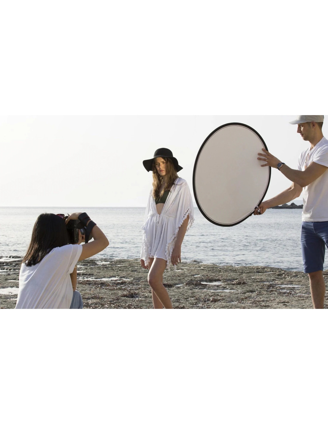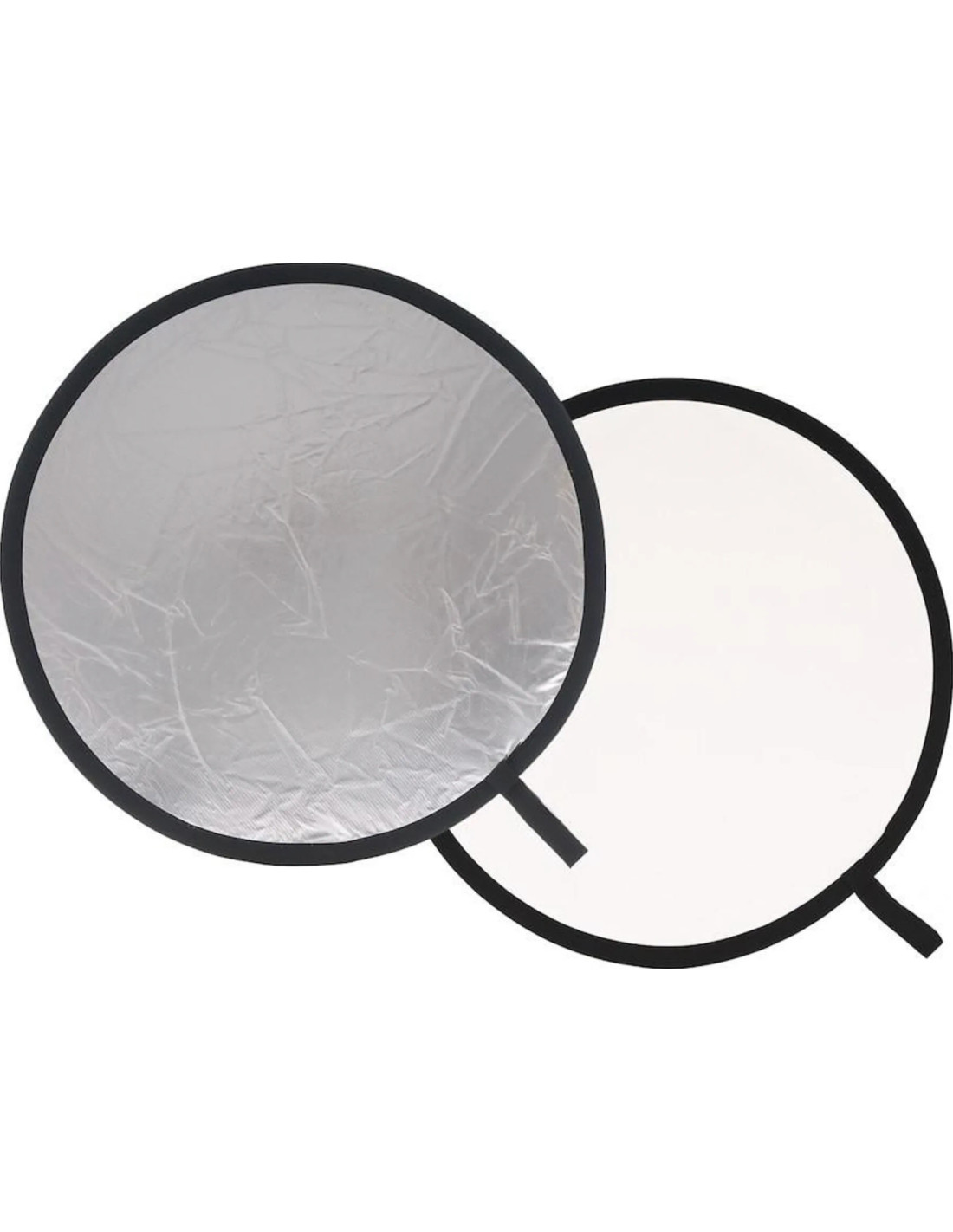 Pannello riflettente ripiegabile Argento/Bianco - D. 95 CM - Misura da chiuso 40 CM - Ripiegabile / Reversibile - Garanzia a vita della molla di apertura - Nastro dei bordi rinforzato - Superfici riflettenti a doppio rivestimento - Si richiude in un terzo della misura originale.