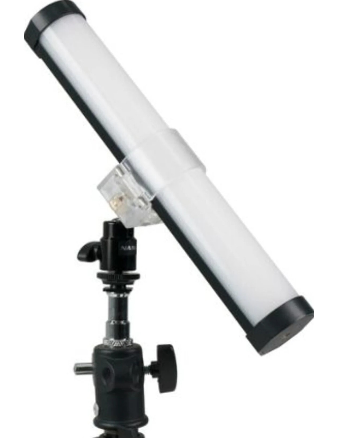 La clip in policarbonato trasparente Nanlite PavoTube e la mini testa a sfera con adattatore hot shoe e attacco da 1/4 "-20 sono un supporto trasparente e regolabile per un Pavotube 6C II. Puoi collegarlo a una slitta per fotocamera, un supporto per luci o un accessorio con filettatura maschio 1/4 "-20.