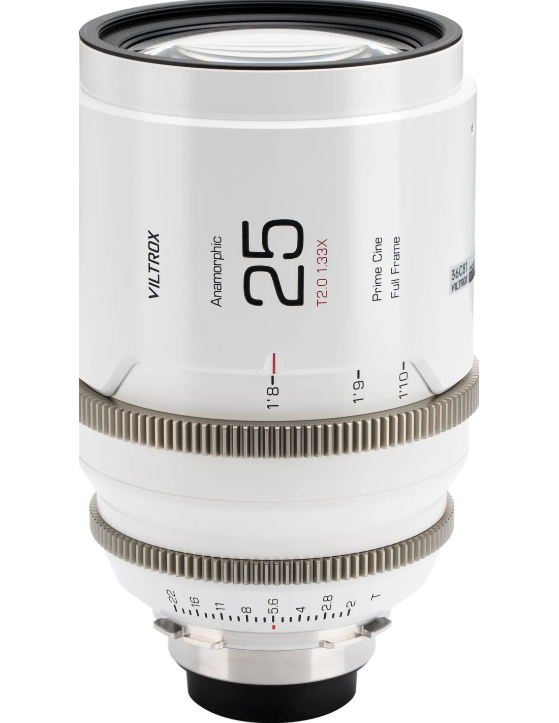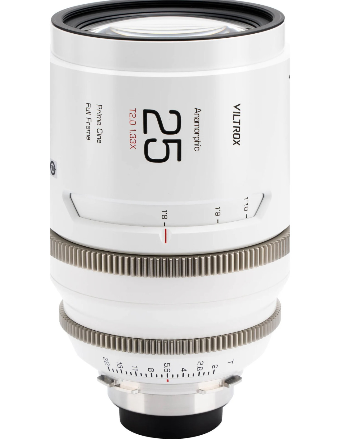Catturate un look anamorfico full-frame utilizzando la vostra cinepresa e l'obiettivo anamorfico ARRI PL-mount EPIC 25mm T2 1.33x di Viltrox. Questo obiettivo bianco come la luna produce un rapporto d'aspetto 2,35:1 de-squeezed con bokeh ovale, respiro minimo, striature blu e un look retrò con toni coerenti da un bordo all'altro. Come gli altri obiettivi della serie EPIC, questo obiettivo ha un posizionamento coerente degli ingranaggi, un centro di gravità comune, un rivestimento impermeabile dell'elemento frontale e un diametro anteriore di 95 mm compatibile con molti matte box e anelli adattatori per professionisti.