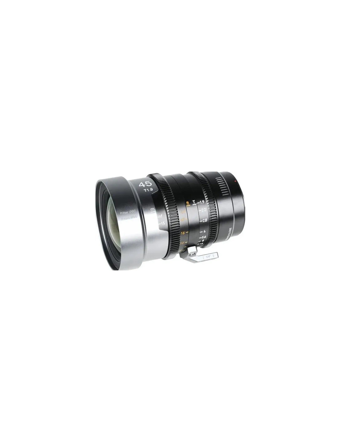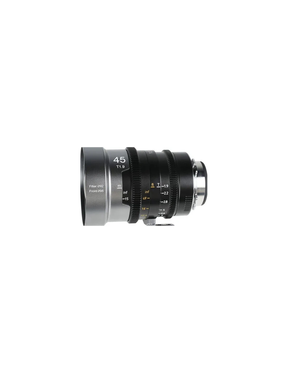 - Questo obiettivo IronStar da 45 mm ha un diametro esterno frontale di 95 mm e la sua messa a fuoco MOD 0,8 e gli ingranaggi del diaframma sono compatibili con la maggior parte dei matte box standard, delle unità di messa a fuoco e dei sistemi di controllo dell'obiettivo.