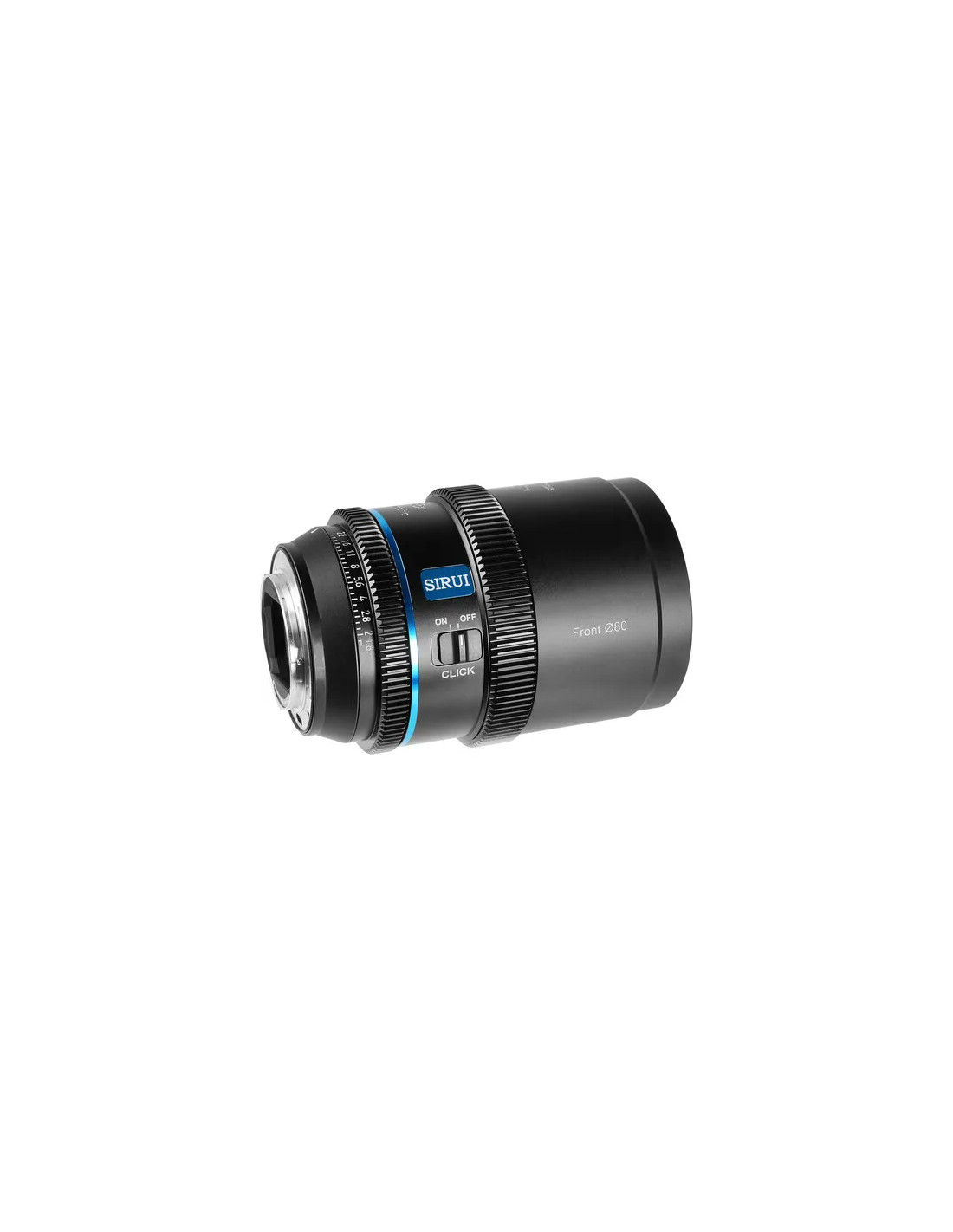 - Le caratteristiche dello stile cinematografico includono un diametro esterno anteriore di 80 mm, ingranaggi MOD standard da 0,8 e un'ampia rotazione della messa a fuoco di 360°.