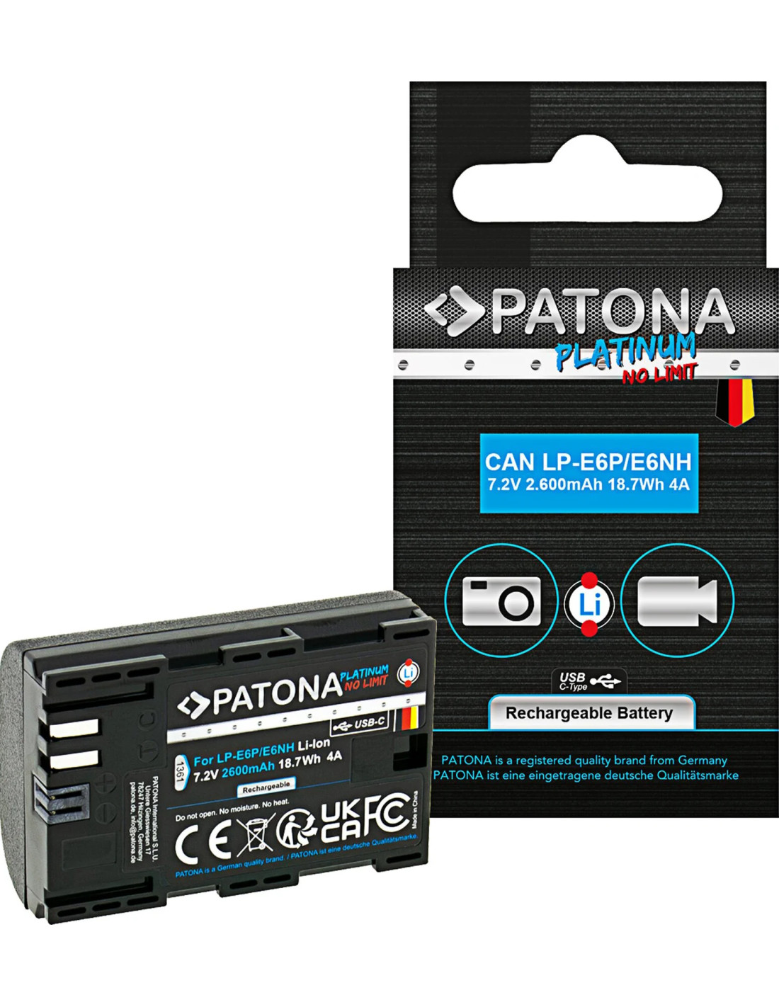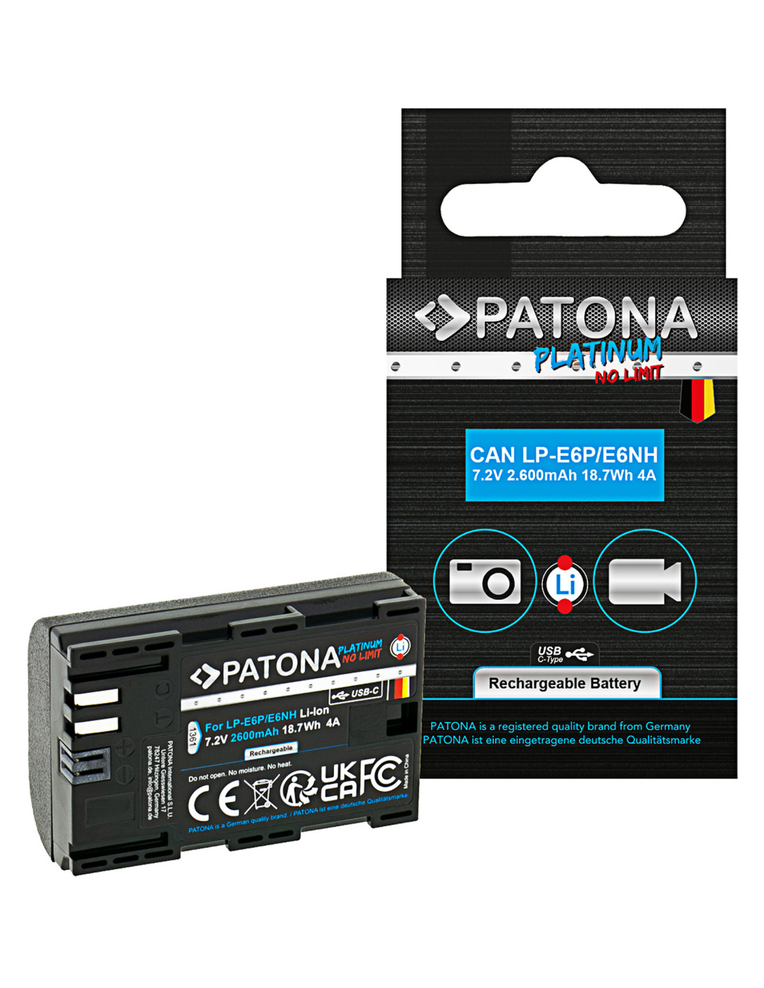 La batteria PATONA Platinum è compatibile con qualsiasi fotocamera Canon che richieda batterie della serie LP-E6.