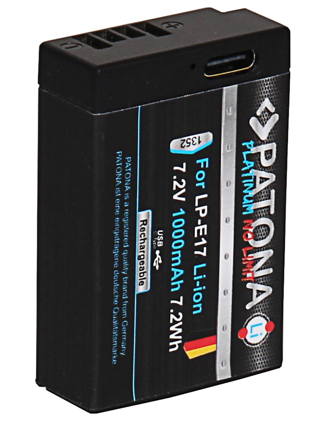 PATONA PLATINUM BATTERY WITH USB-C INPUT F. CANON LP-E17 EOS RP 77D 200D 750D 760D 8000D KISS X8I M3 REBEL REBEL T6I