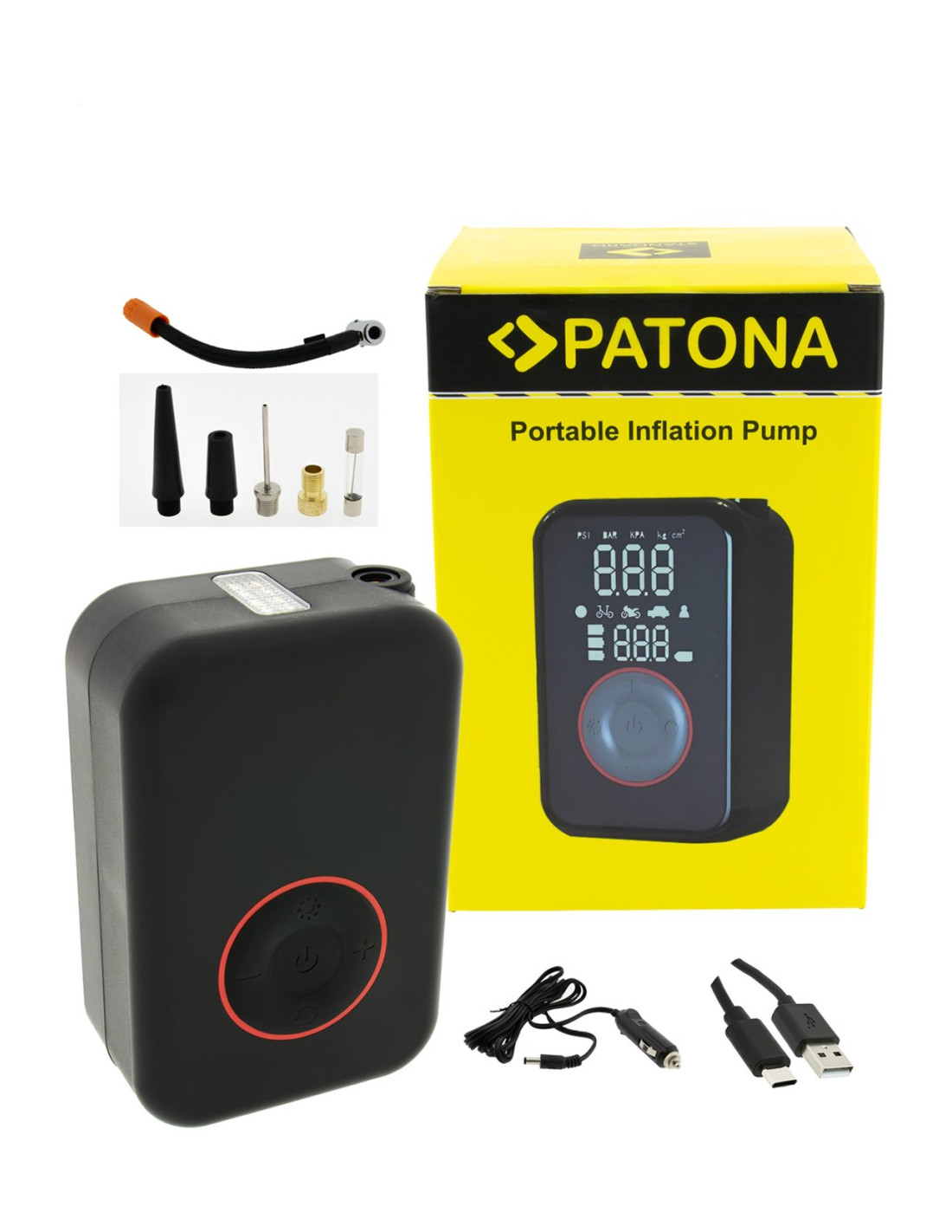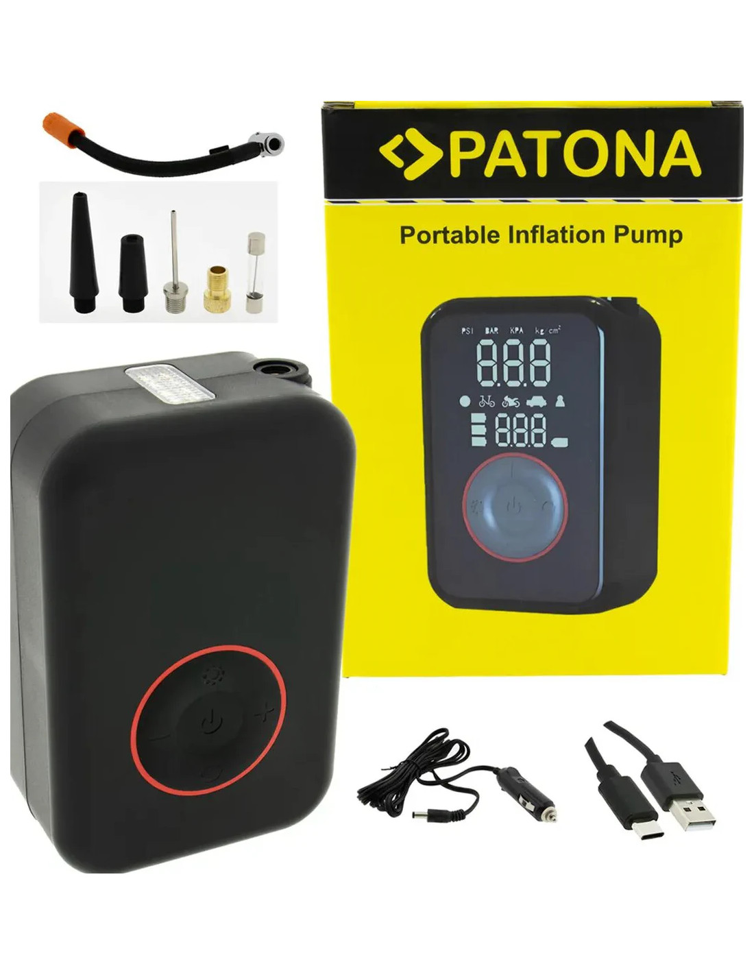 La pompa elettrica portatile PATONA è la compagna ideale per i tuoi spostamenti. Che si tratti di pneumatici di biciclette, auto, palloni, materassi gonfiabili o altri articoli gonfiabili, con questa pratica pompa sarai sempre ben equipaggiato. Grazie al suo design compatto, si inserisce facilmente in qualsiasi borsa, zaino o vano portaoggetti, rendendola pronta all'uso in qualsiasi momento.