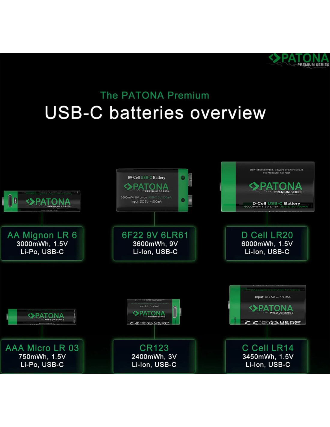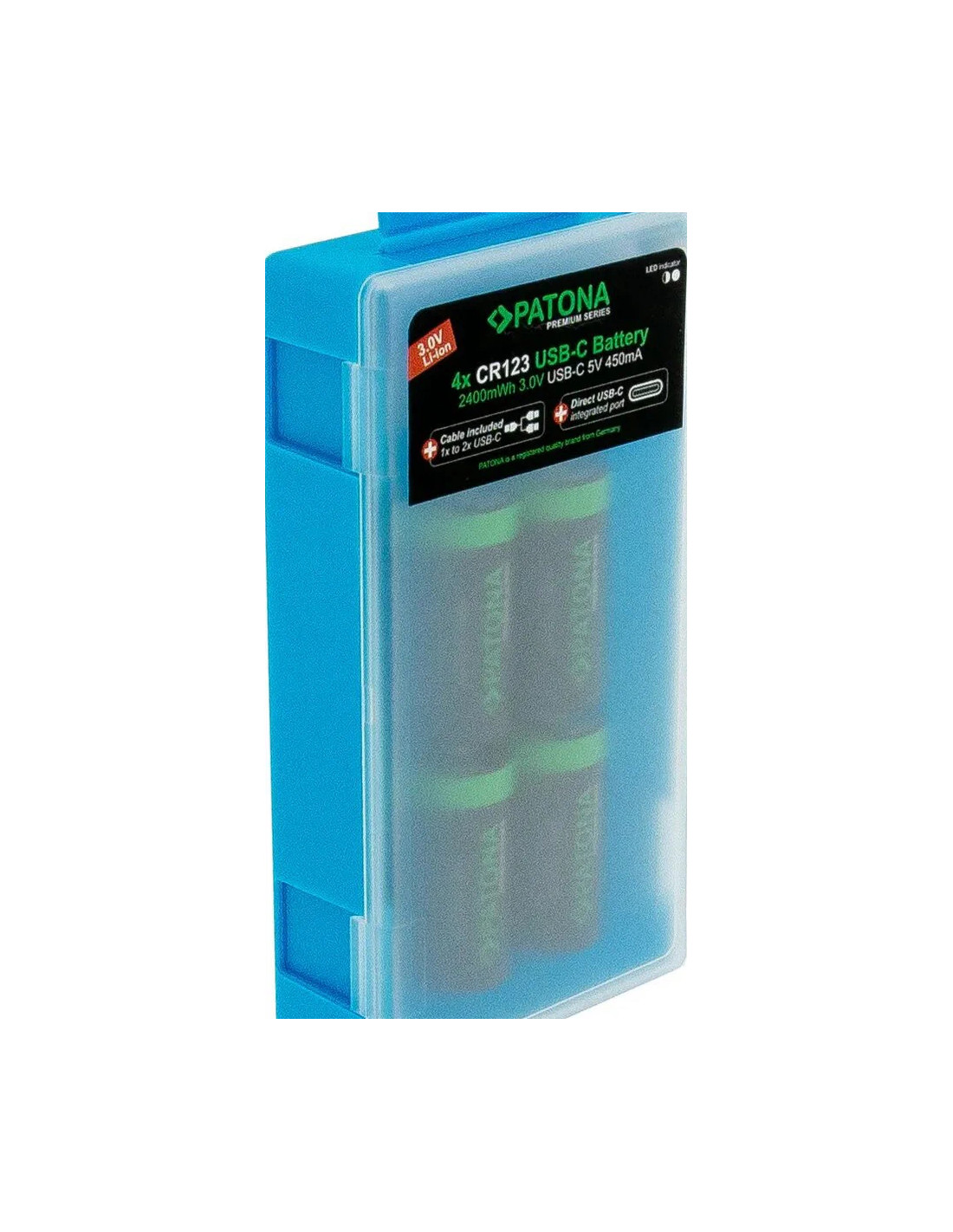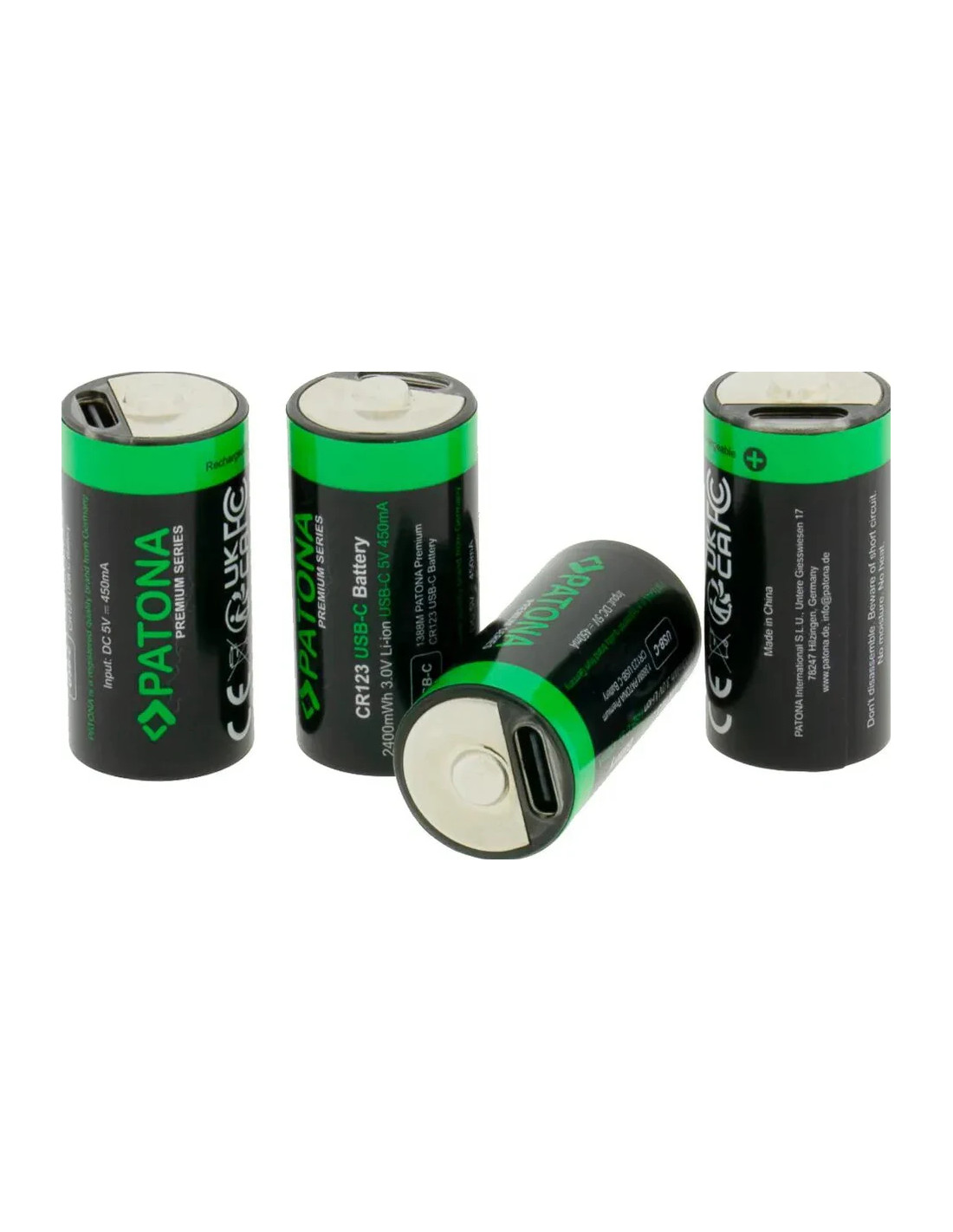 - 4 batterie agli ioni di litio PATONA CR123A con USB-C