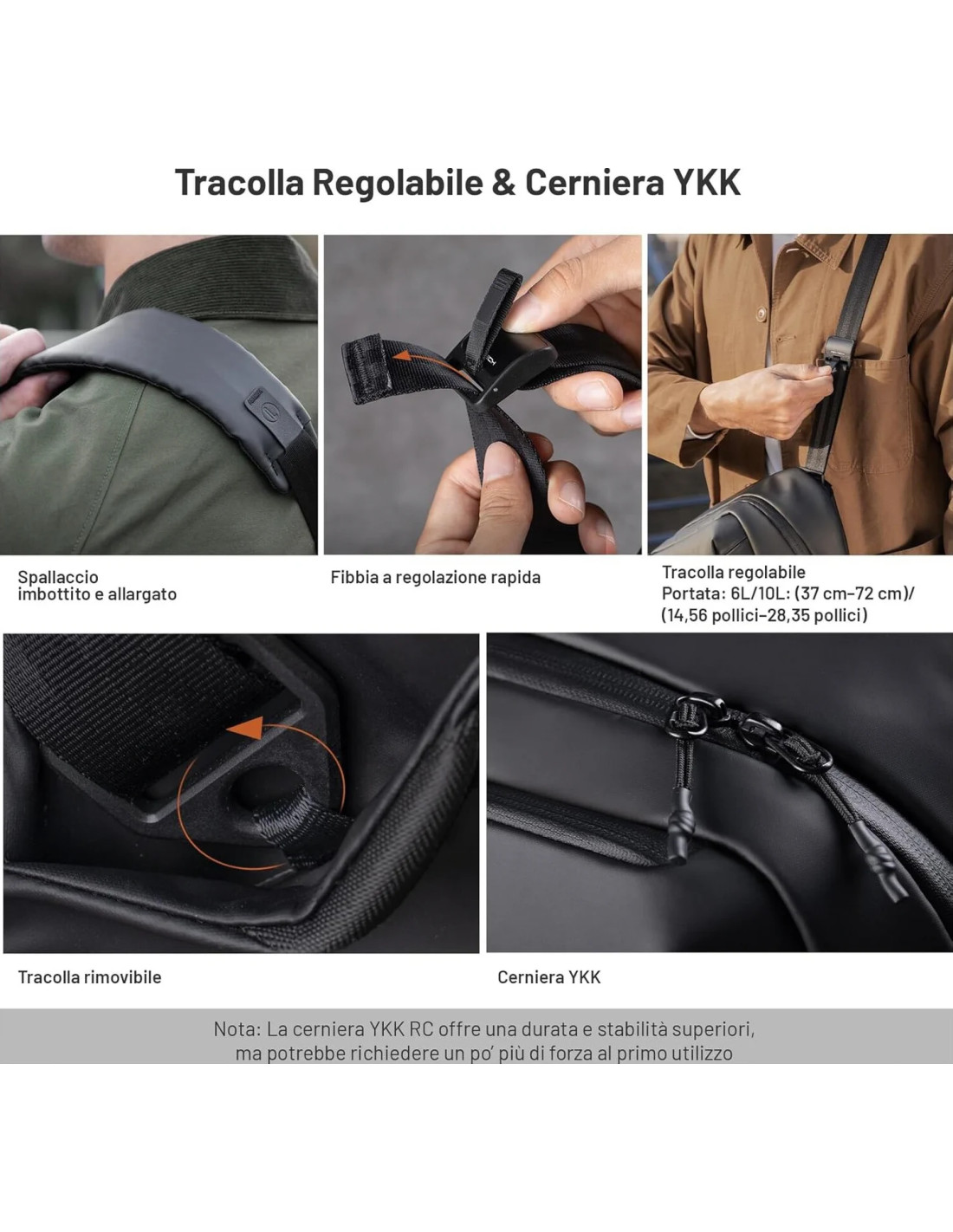 - Opzioni di trasporto: Maniglia, tracolla