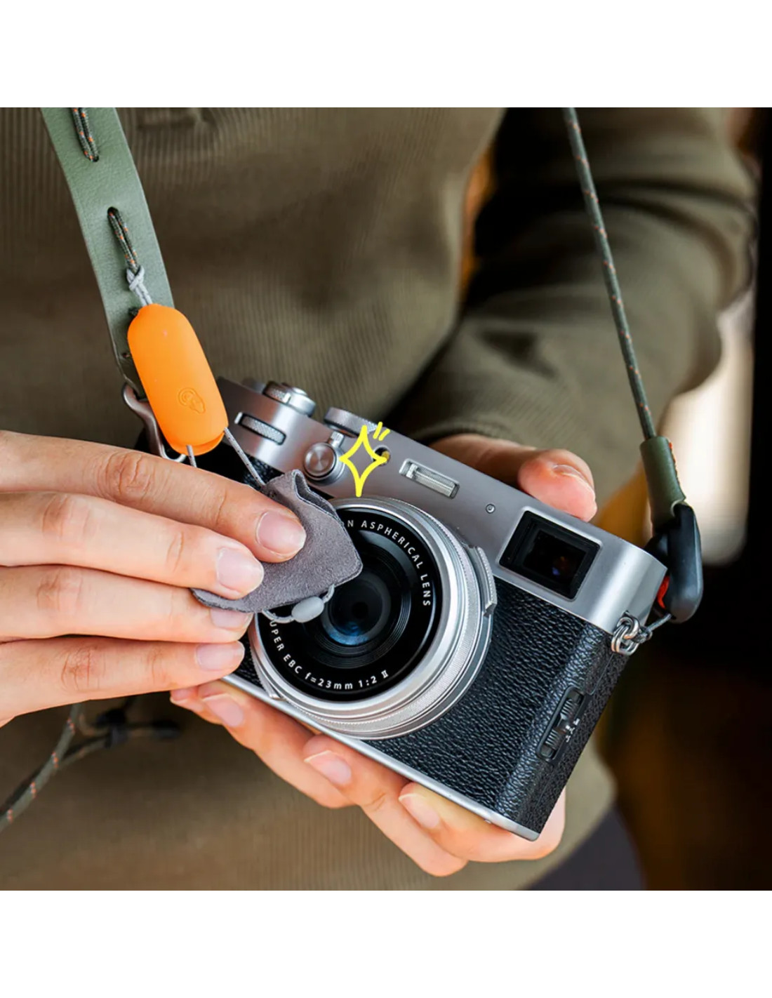 Un pratico panno per la pulizia dell'obiettivo integrato assicura che la tua fotocamera sia sempre pronta a catturare la tua prossima creazione.