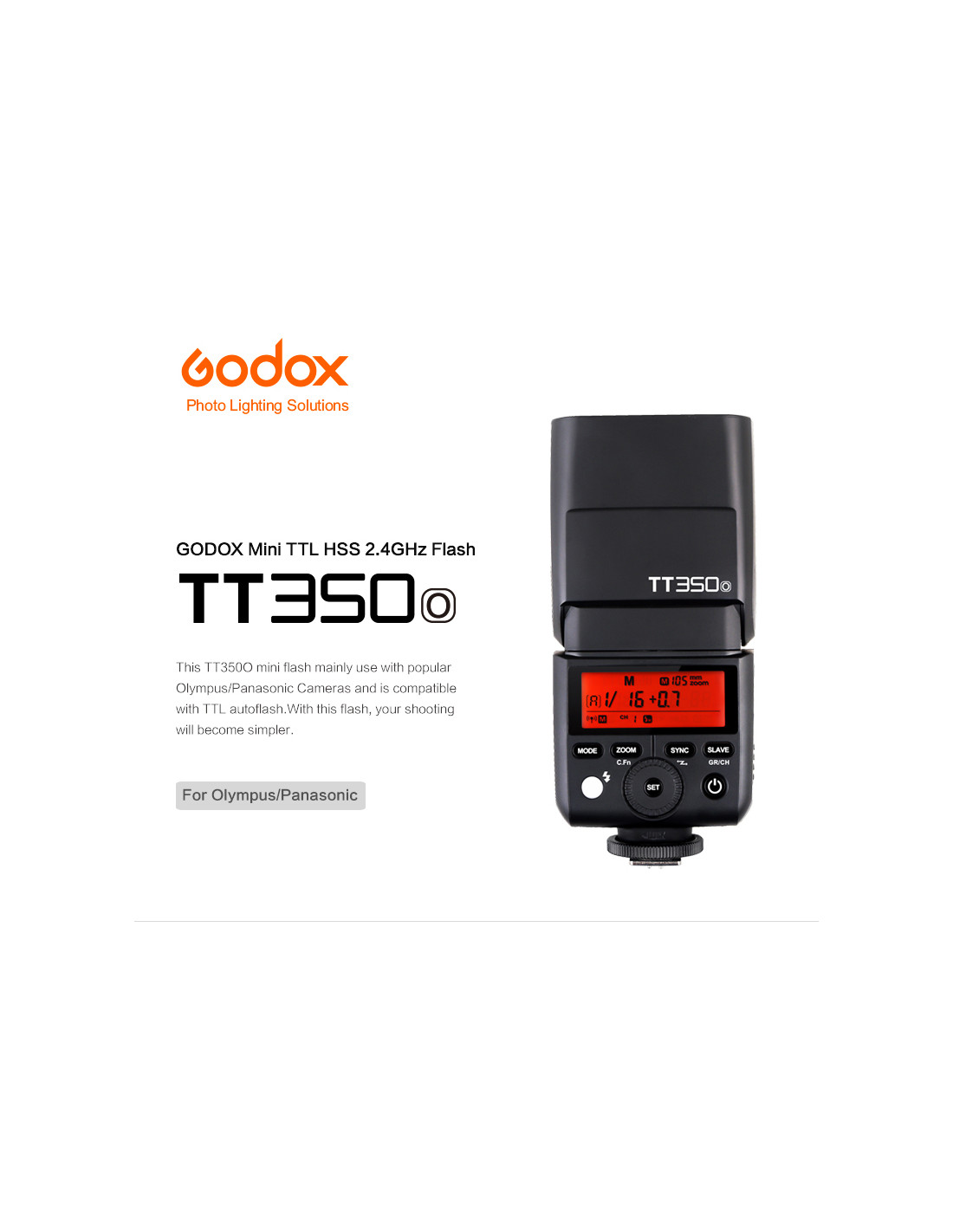 Godox - Camera Flash Speedlite per Olympus/Panasonic TT350 TTL Godox TT350 è un mini flash TTL con supporto wireless 2,4GHz.
