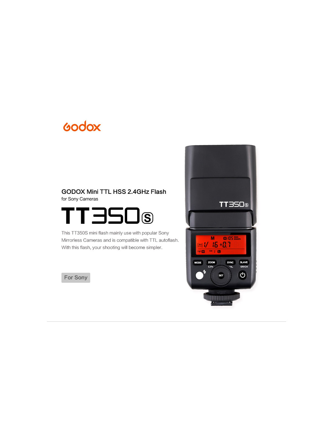 Godox - Camera Flash Speedlite per Sony TT350 TTL Godox TT350 è un mini flash TTL con supporto wireless 2,4GHz.