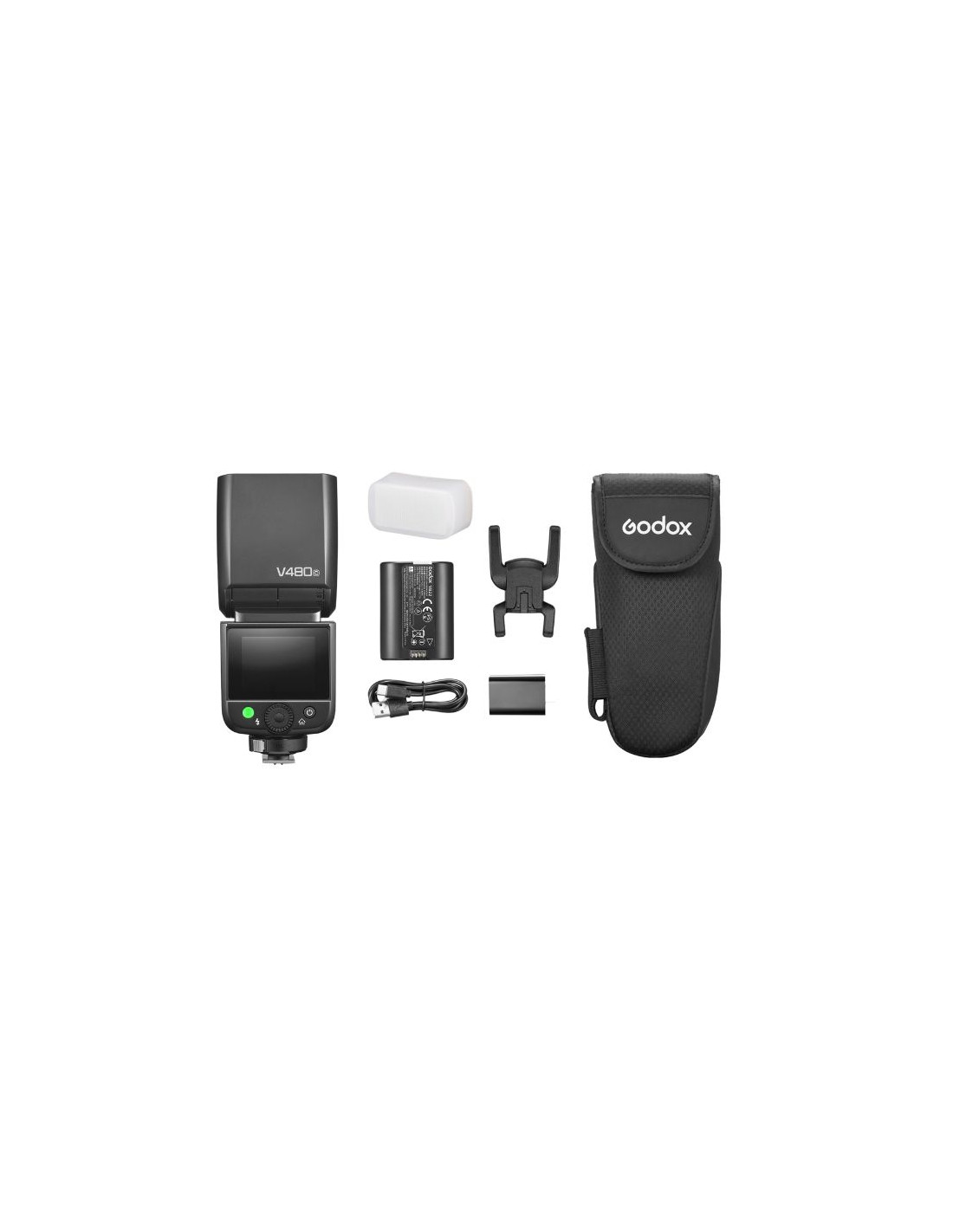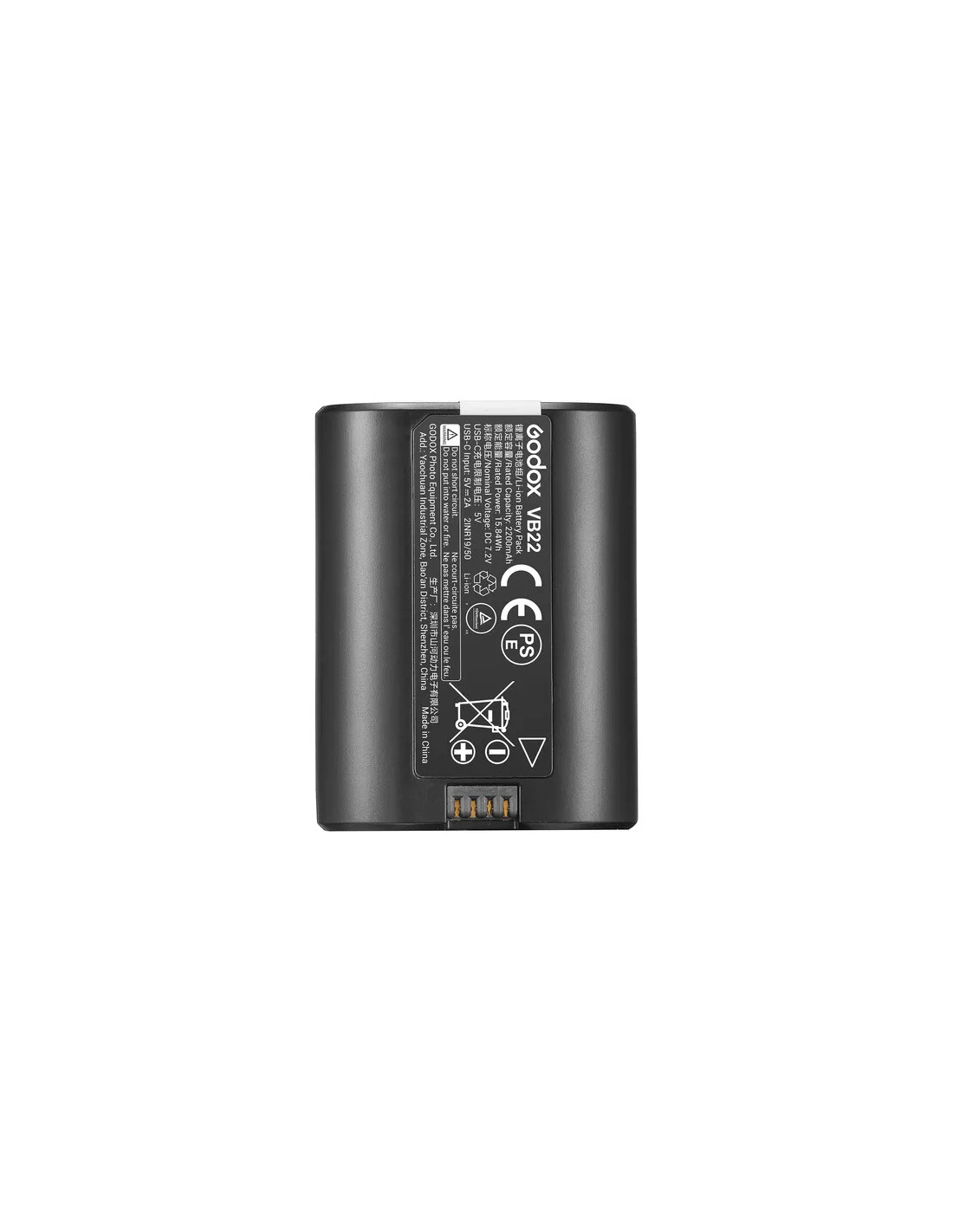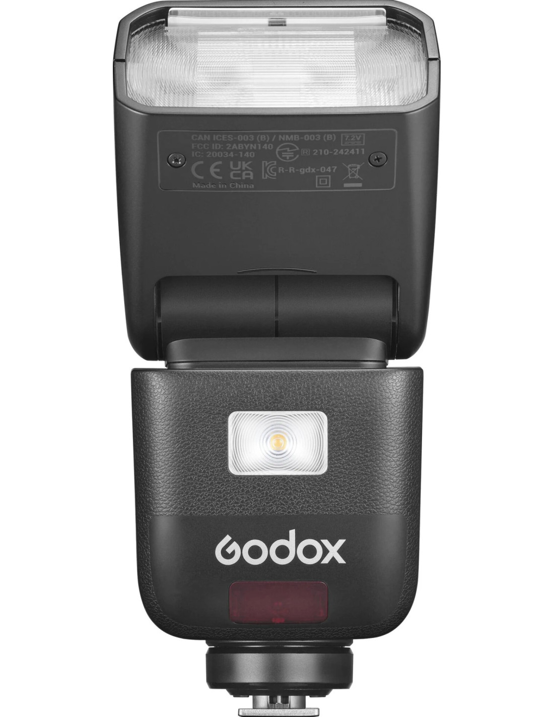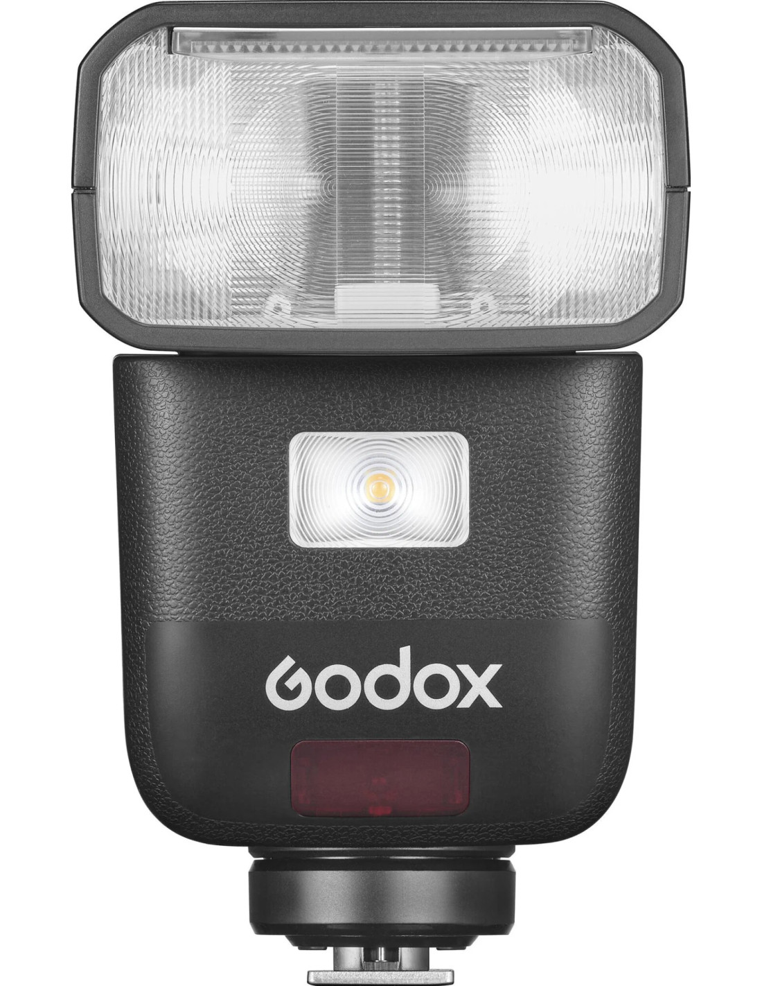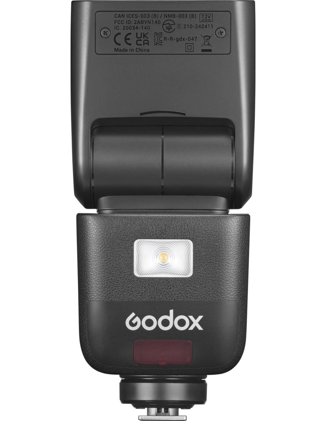 La batteria rimovibile al litio da 7,2 V e 2200 mAh è fornita con tempi di ricarica di 1,7 secondi e fornisce circa 650 flash a piena potenza per ogni carica. Godox include nella confezione anche il cavo USB-C e l'adattatore di alimentazione.