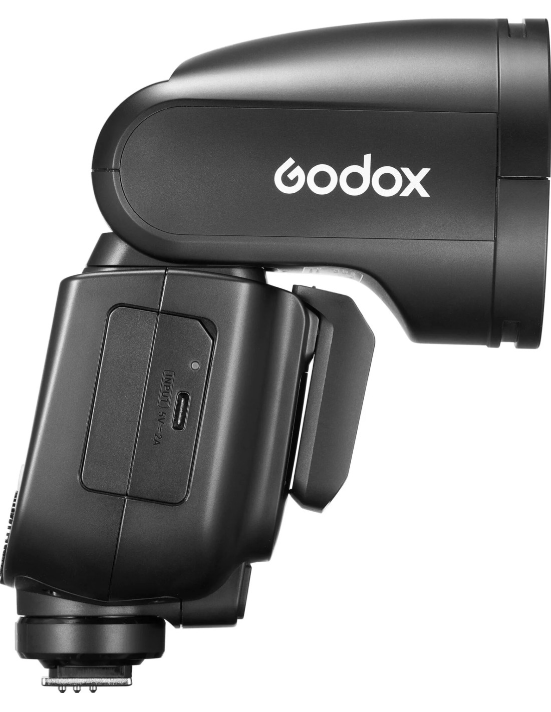 Questa unità è alimentata da una batteria ricaricabile inclusa, che fornisce un tempo di riciclo di 1,5 secondi, abbastanza veloce per seguire l'azione. La potenza del flash è regolabile da 1/1 a 1/256, per un totale di 500 lampi a piena potenza con una sola carica della batteria. In caso di riprese continue, il V1Pro S può scattare 100 volte a piena potenza prima che l'unità raggiunga la fase di protezione dal surriscaldamento. La batteria in dotazione è dotata di una porta USB-C integrata che consente di caricarla direttamente da qualsiasi dispositivo compatibile con USB-C. Inoltre, il V1Pro S funziona con l'alimentatore per flash PB960 disponibile separatamente.