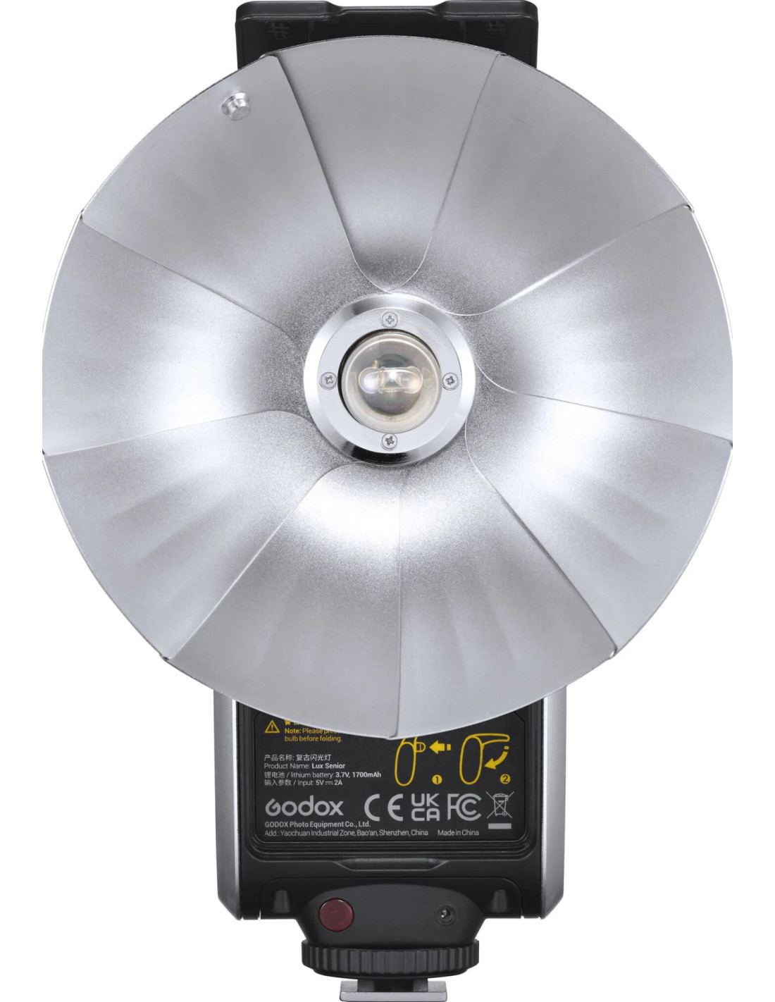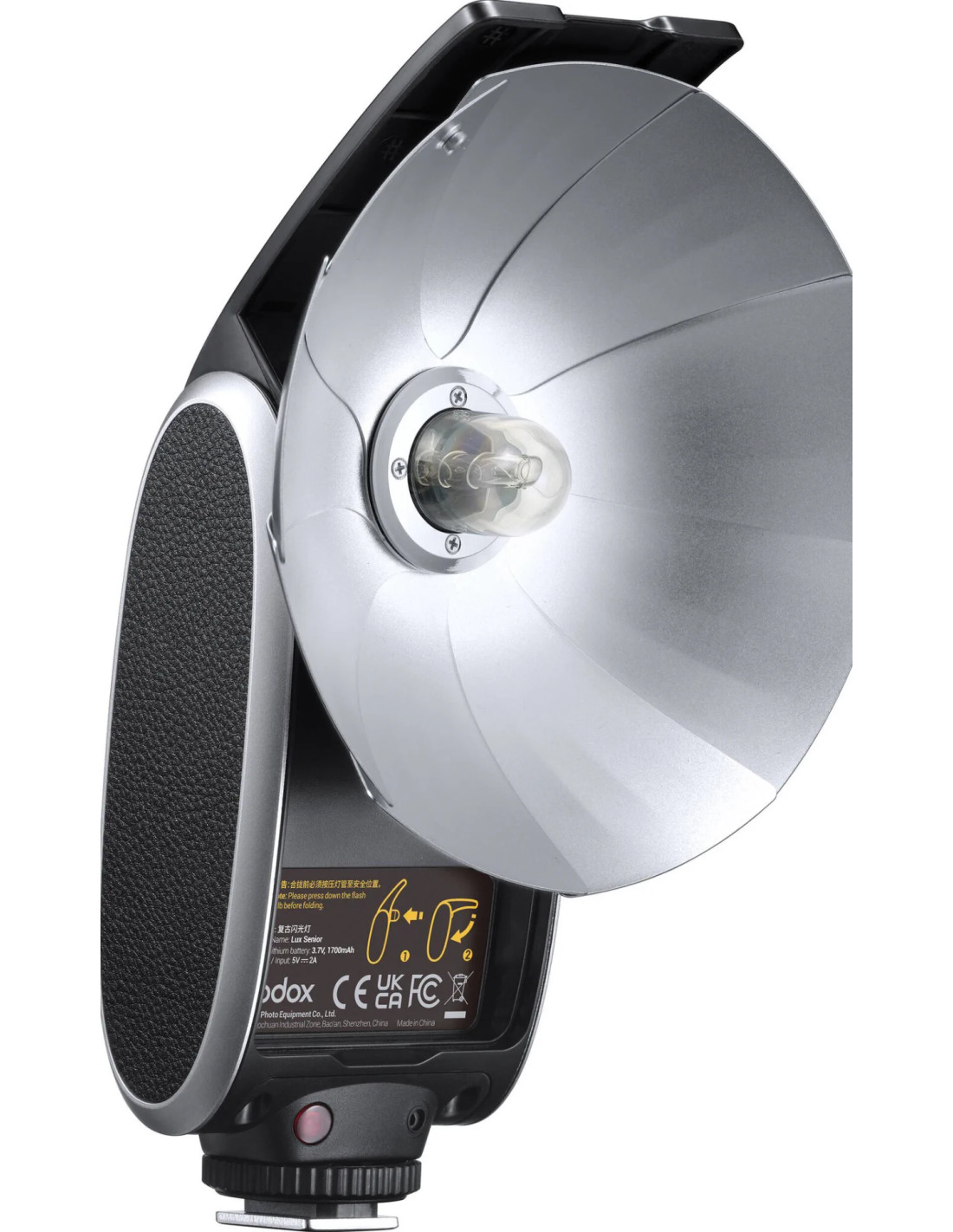 L'atmosfera retrò del Lux Senior risuona di più nell'uso. Sperimentare il classico modo di fotografare con il riflettore argentato a ventaglio per modellare la luce e il bulbo del flash, unisce una forma vintage con la nuova tecnologia.
