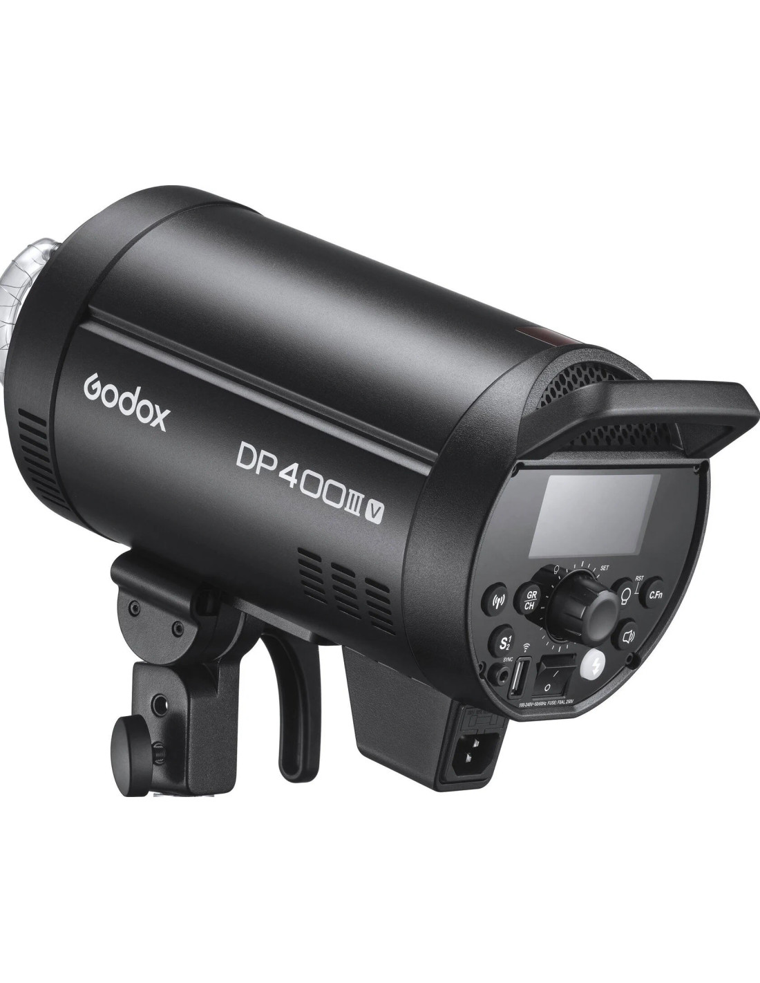 Con un numero guida di 285', il flash professionale da studio DP400III-V con lampada modellante a LED di Godox è un monoluce da 400 W con ampie caratteristiche professionali e convenienti. Ha una temperatura di colore di 5800 K, un tempo di riciclo rapido di appena 1 secondo a piena potenza e durate del flash da 1/800 a 1/2000 di arresto dell'azione. La potenza è variabile da 1/64 a piena potenza, mentre la lampada pilota LED da 30 W del DP400III-V assorbe pochissima energia con grande luminosità. Le opzioni di attivazione includono cavo di sincronizzazione, attivazione del ricevitore, pulsante di prova e porta di controllo wireless. Il DP400III-V funziona con alimentazione di rete da 100 a 240 V CA.