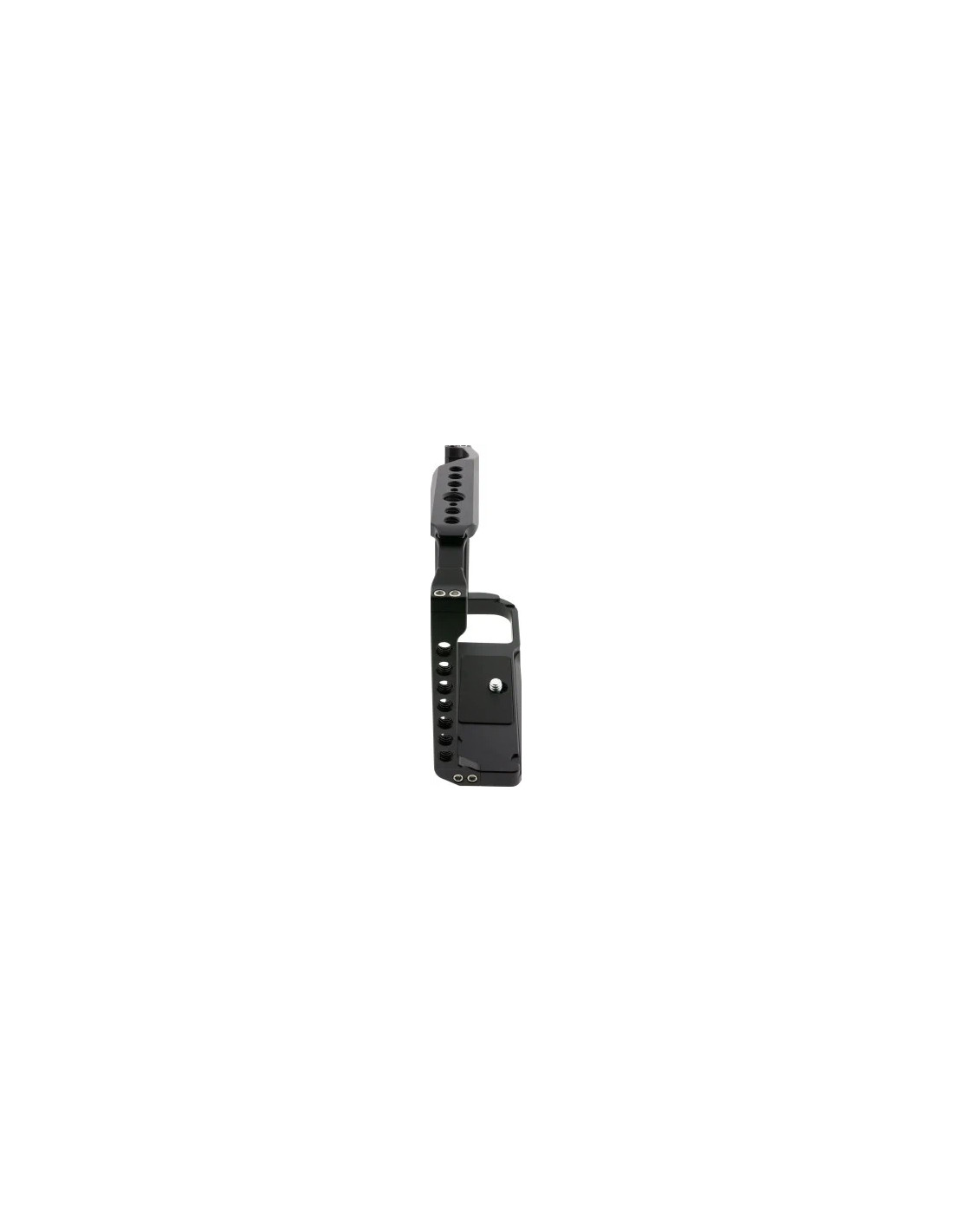 I fori filettati da 1/4 di pollice e i fori di montaggio da 3/8 di pollice sulla parte superiore, sui lati e sul fondo della gabbia consentono di fissare gli accessori. L'attacco a slitta consente di utilizzare maniglie superiori e laterali, microfoni, luci LED, monitor e supporti per monitor, ecc.