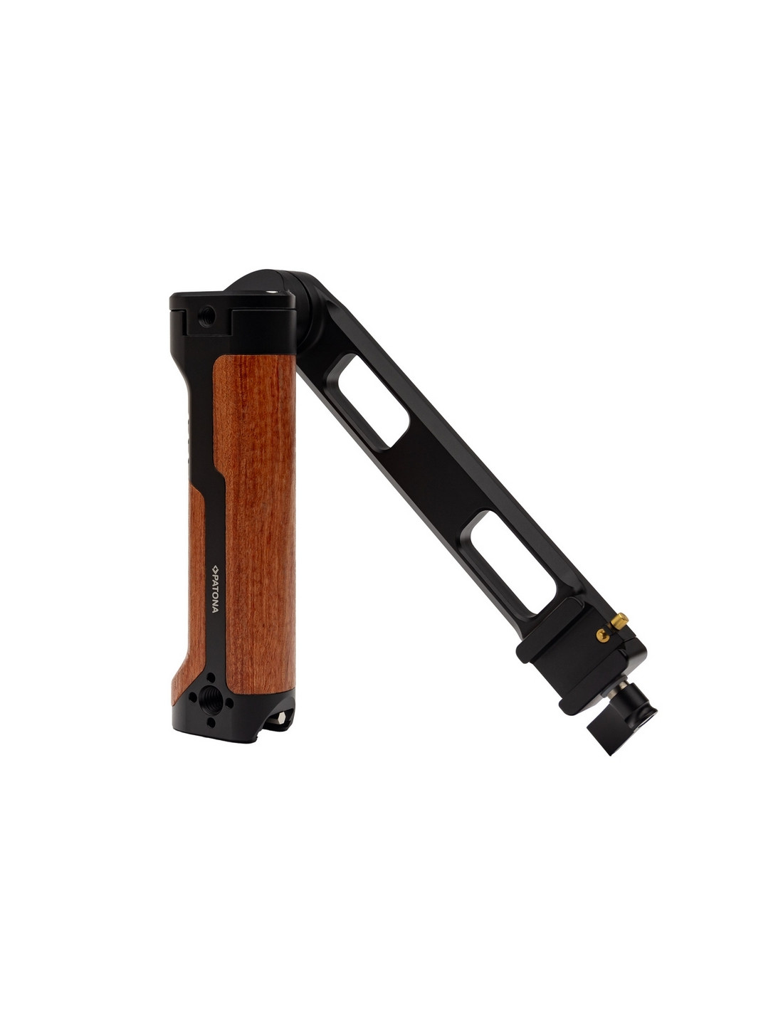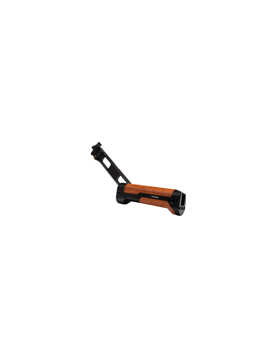 L'impugnatura di stabilizzazione PATONA è realizzata in lega di alluminio anodizzato, leggera e robusta, e ha un involucro di legno che si adatta comodamente alla mano grazie alla sua forma speciale.