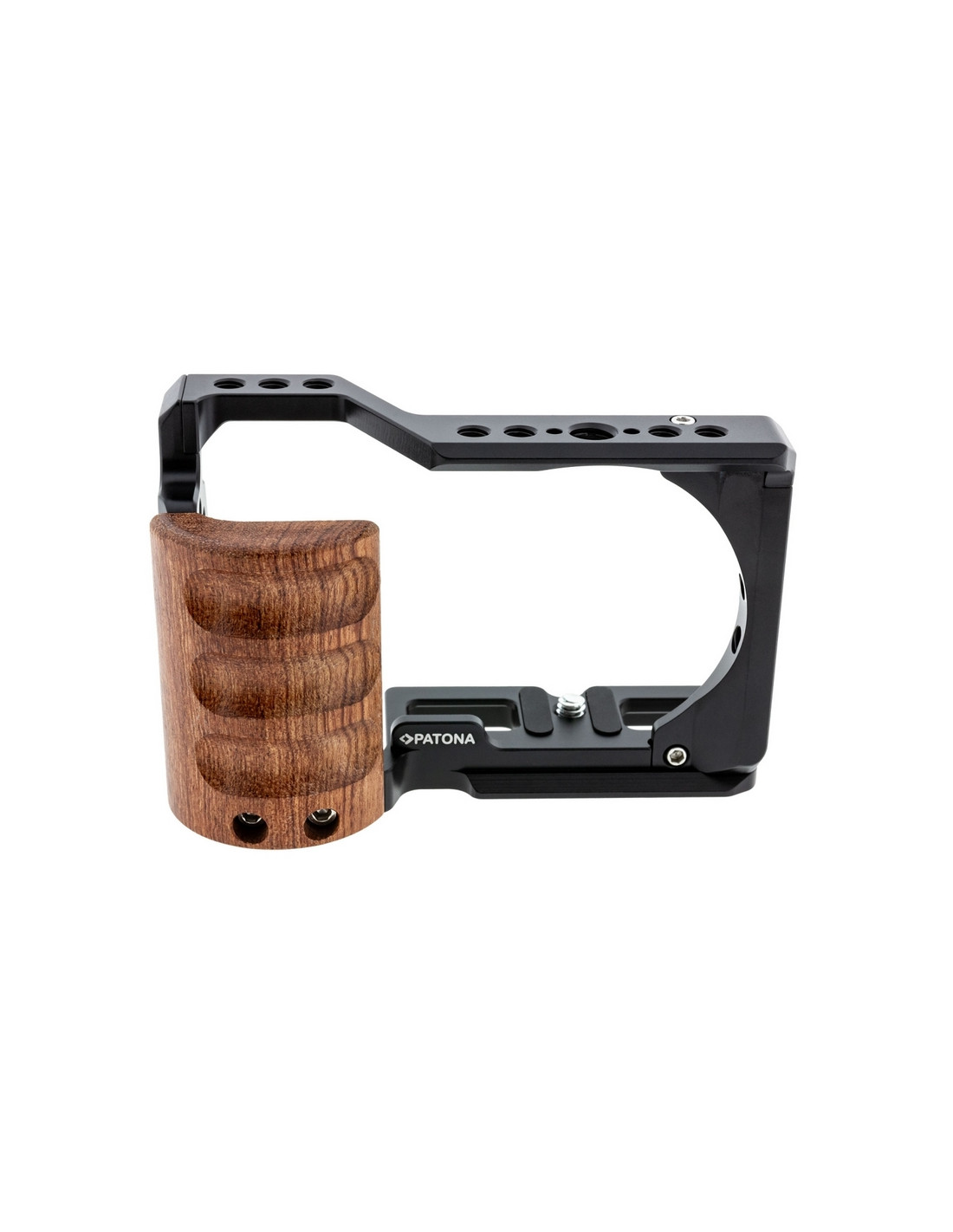 La nostra PATONA Premium Camera Cage per SONY ZVE-10 è stata appositamente progettata per fissare gli accessori della fotocamera e proteggere la fotocamera da eventuali danni. La gabbia è realizzata in lega di alluminio di alta qualità e con un poggia mano in legno, che garantisce una lunga durata. La fotocamera viene bloccata nella gabbia con una vite da 1/4” -20.