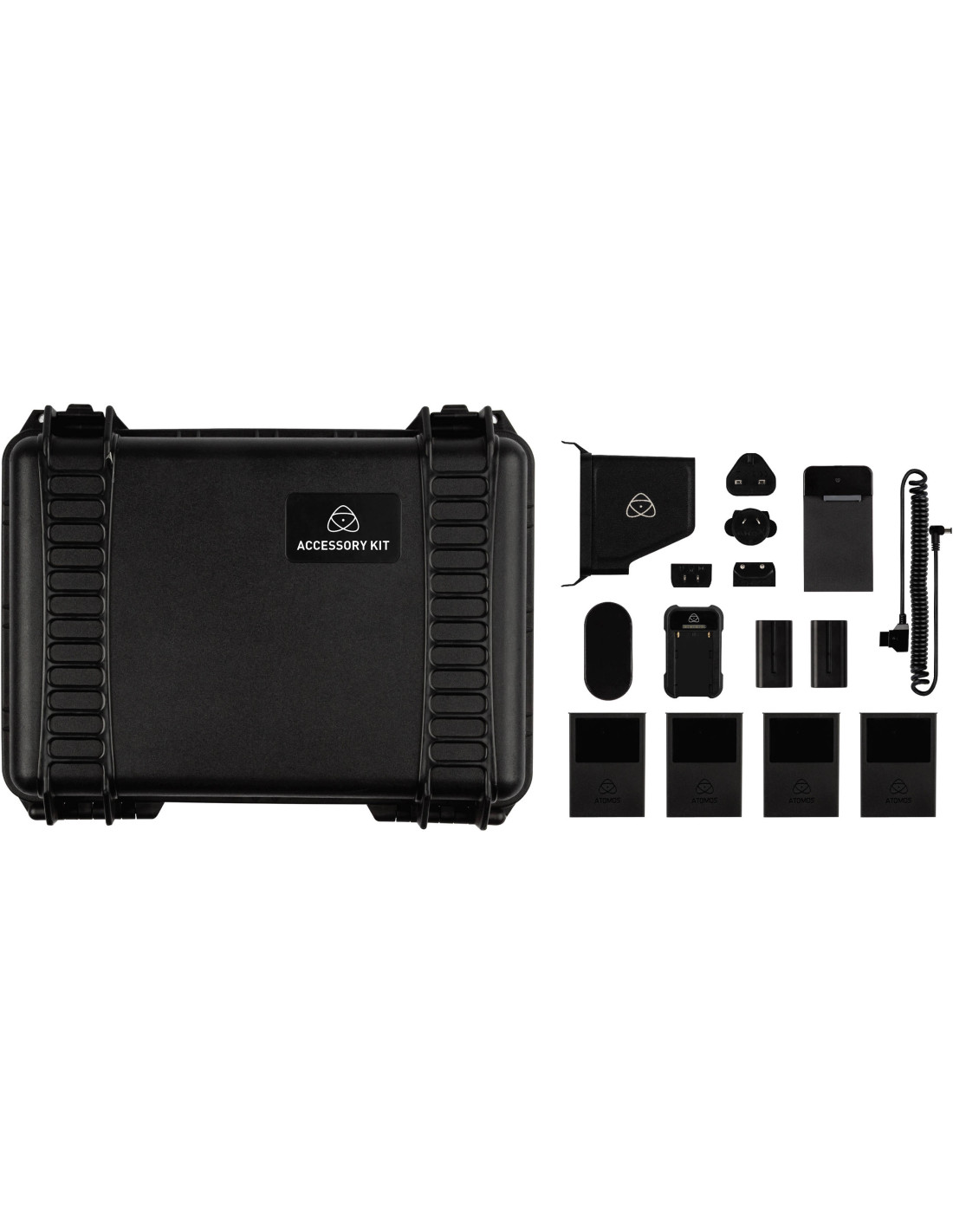 Il kit di accessori di Atomos include tutto il necessario per un flusso di lavoro completo con il tuo monitor Shogun 7 da 7". Il kit viene fornito con due batterie da 5200 mAh, un caricabatterie rapido, una docking station USB, un cavo di alimentazione D-Tap, un alimentatore , quattro drive caddies Master Caddy II e un parasole. È incluso anche un flight case rigido per riporre e trasportare il tuo monitor e tutti i suoi accessori.