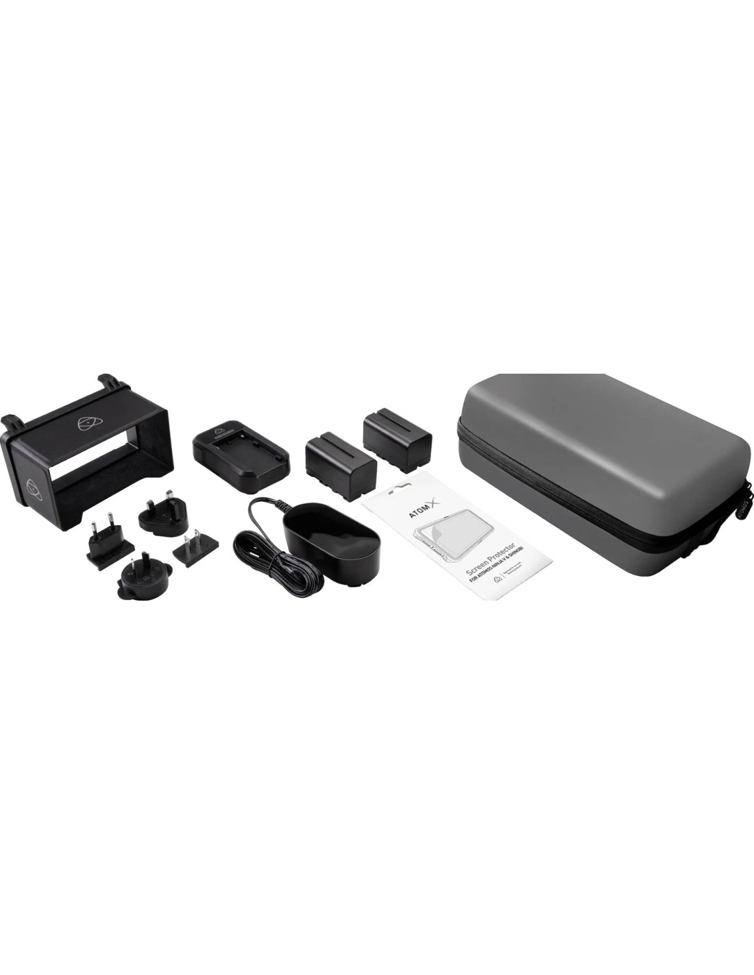 Equipaggia il tuo monitor da 5" con opzioni di alimentazione e accessori da viaggio con questo kit di accessori da 5" di Atomos. È compatibile con i monitor Ninja V, Shinobi o Shinobi SDI con due batterie della serie L, un caricabatterie rapido, un alimentatore CC, un parasole, una protezione per lo schermo e una custodia da viaggio in plastica.