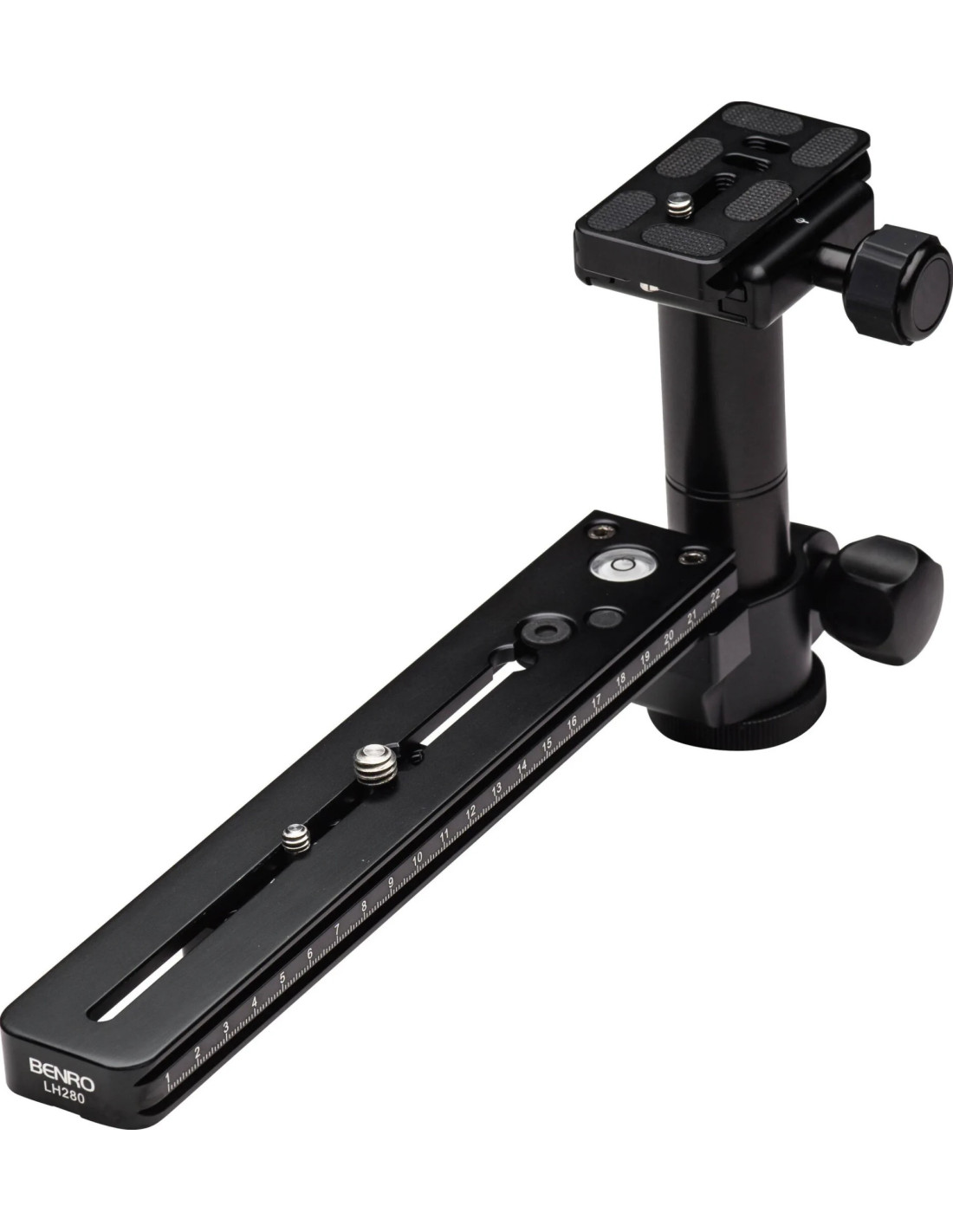 La staffa LH-280 consente di ancorare la fotocamera al treppiedi, in maniera ottimale, quando sulla fotocamera stessa sono montati teleobiettivi di dimensione e peso molto significativi.