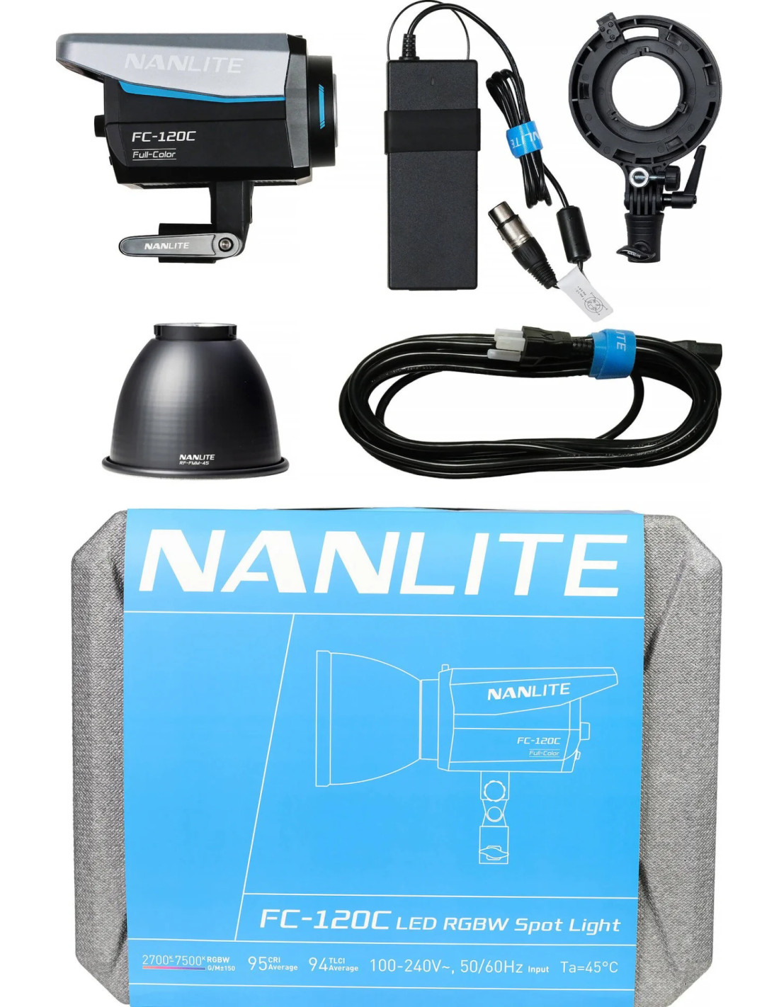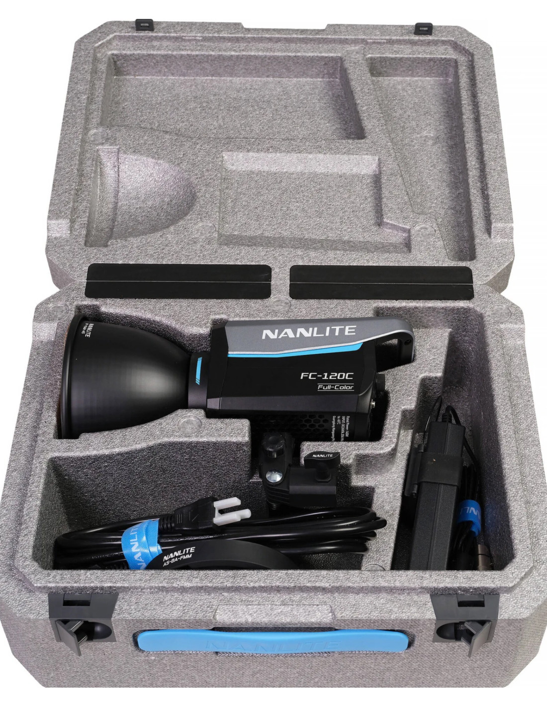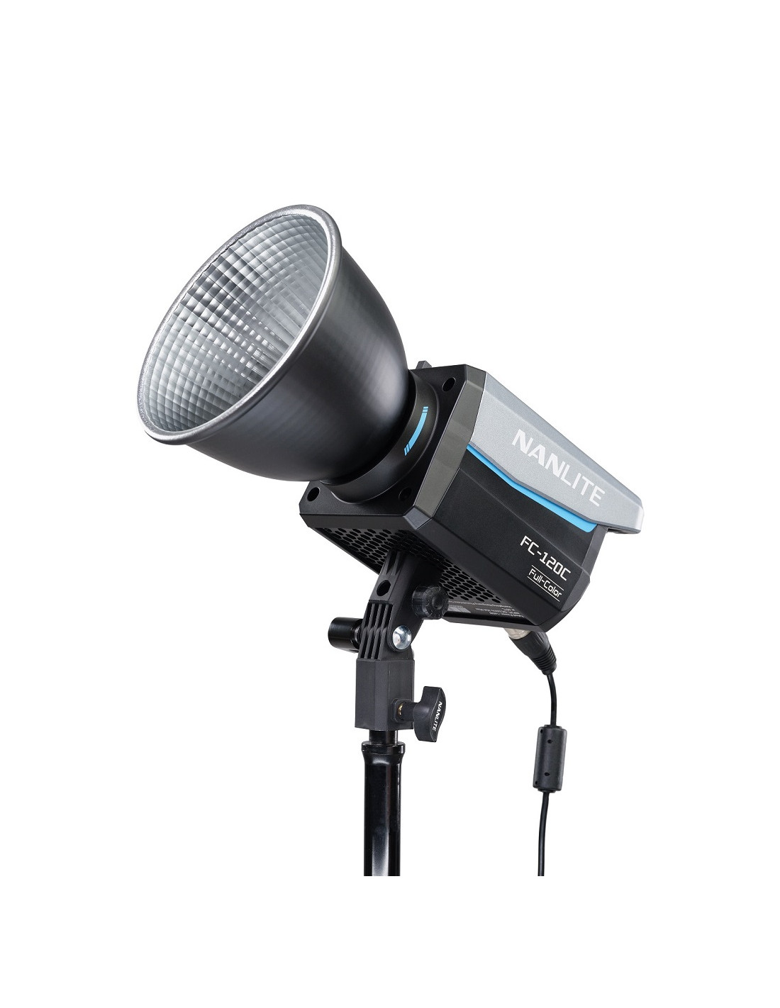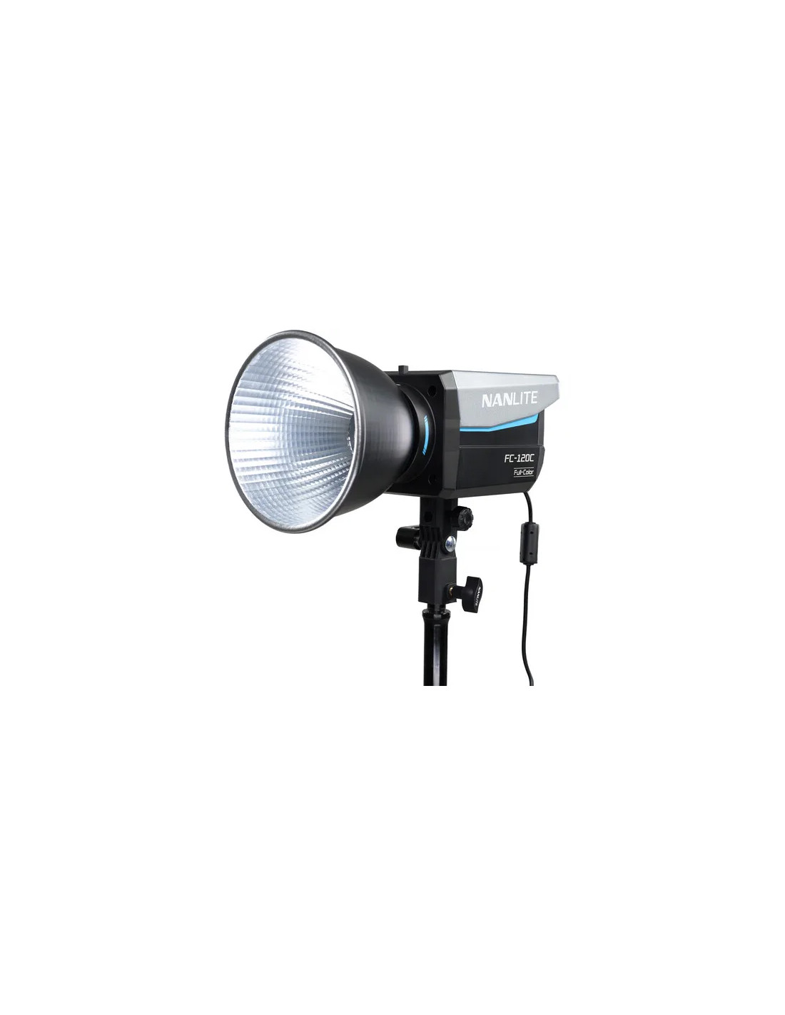 Utilizzando un attacco FM proprietario per modificatori di luce, l'FC120C è compatibile con una selezione di modificatori di luce Nanlite, come diversi tipi di softbox, una lente Fresnel FL-11 opzionale o un attacco per proiezione. L'apparecchio comprende anche un adattatore Bowens con portaombrelli integrato per una maggiore compatibilità con un vasto numero di modificatori di luce opzionali.