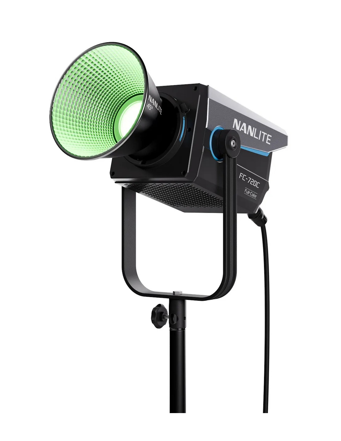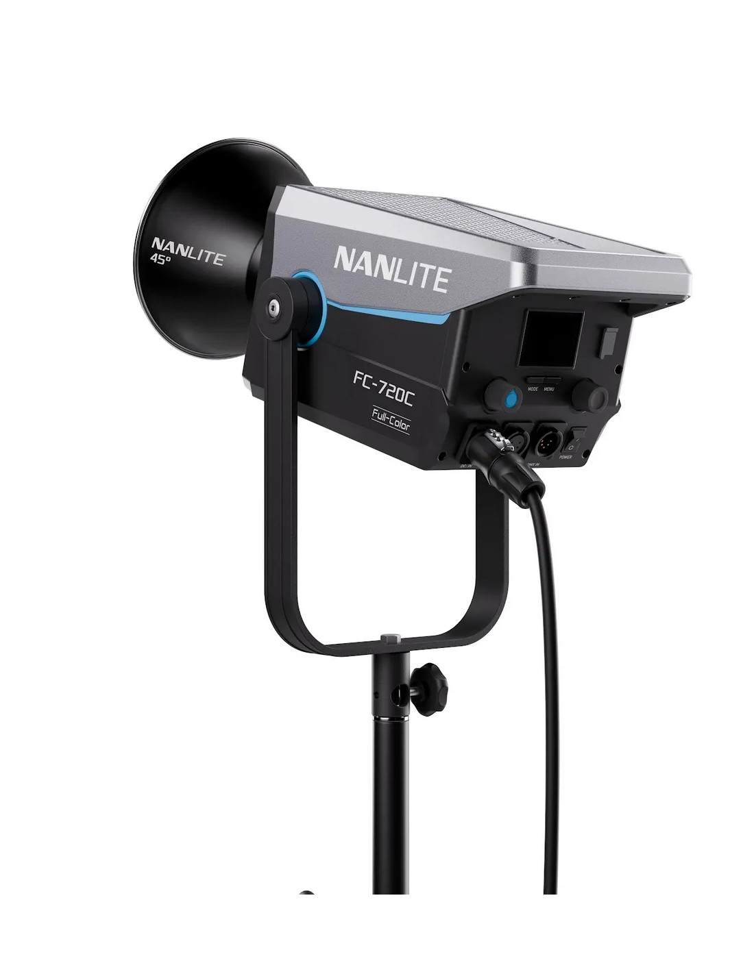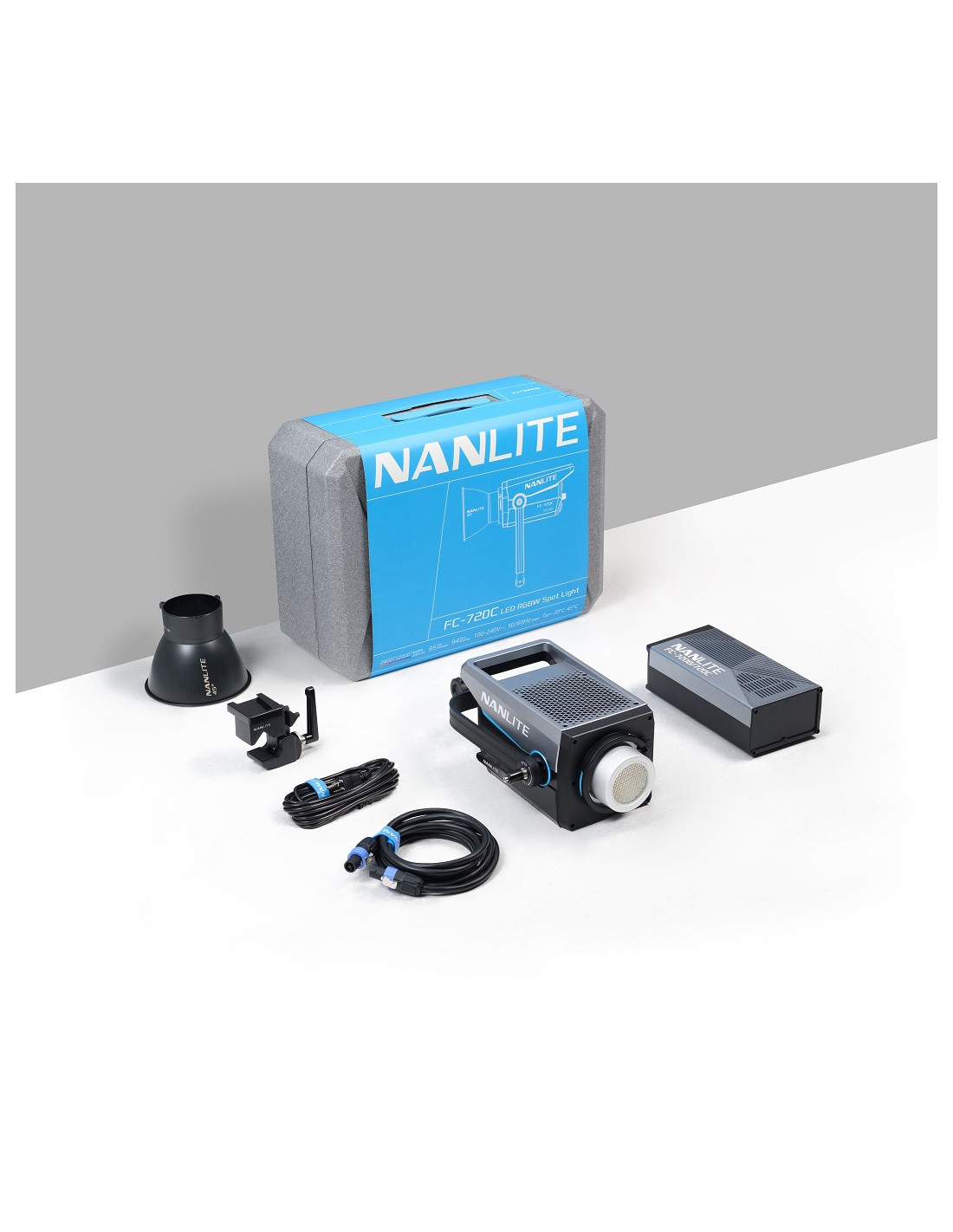 Con una potenza impressionante di 750 W, il faretto full-color FC-720C è perfetto per i creativi e i videografi che necessitano di un'elevata illuminazione e di un'eccellente qualità della luce. Offrono una resa eccezionale, ideale per scene di grandi dimensioni o per emulare la luce del sole in ambienti più piccoli. L'FC-720C condividono lo stesso elegante design delle altre luci della serie FC di NANLITE. Di costruzione robusta ma incredibilmente leggero, con un peso di circa 4,4 kg. Utilizza l'attacco standard Bowens per accessori come softbox e proiettori. Il controllo remoto è possibile tramite l'app NANLINK 2.0 o il DMX cablato integrato. Qualunque sia il tipo di ripresa, che si tratti di live streaming, fotografia di ritratti o produzione cinematografica e televisiva, l'FC-720C è la scelta ideale.