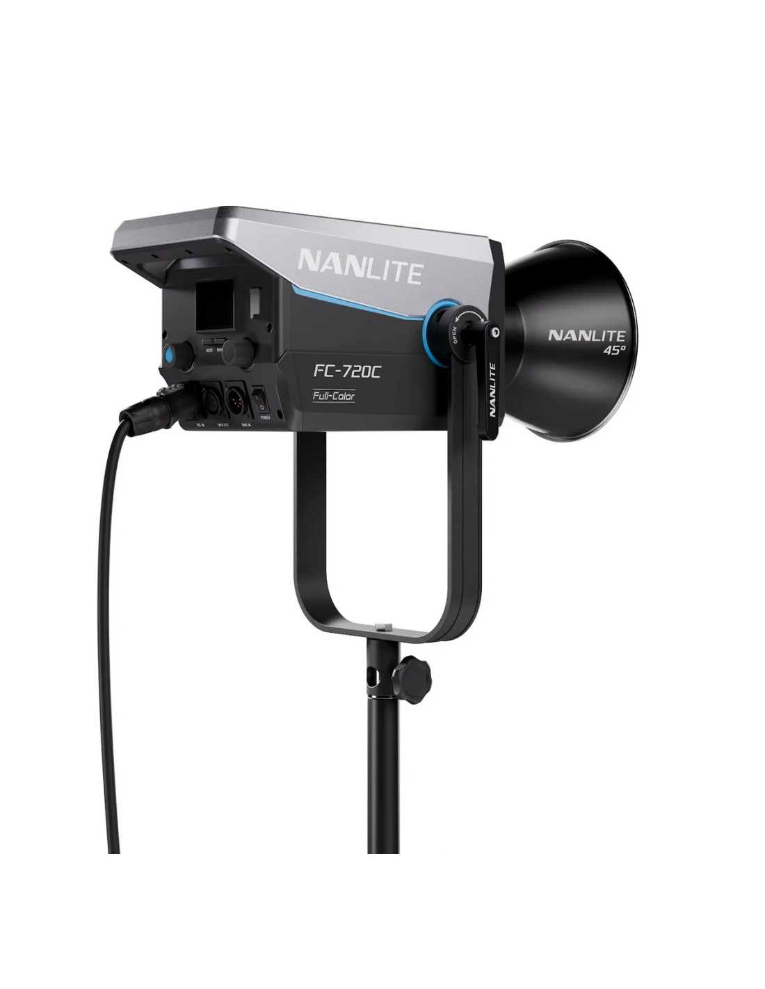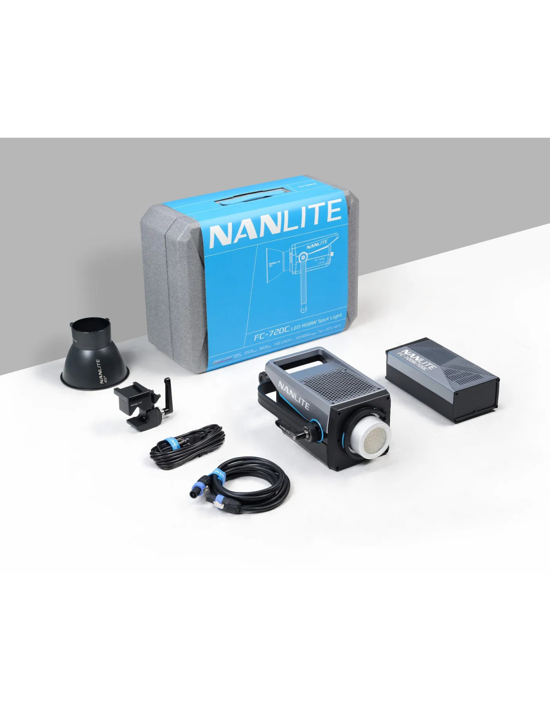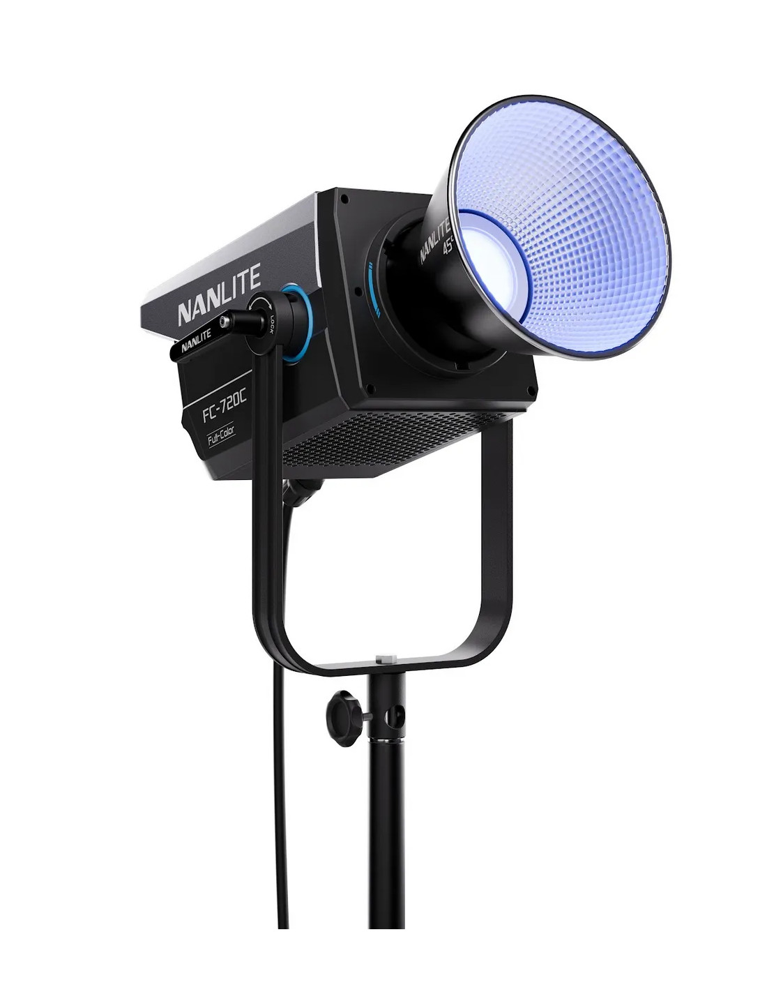 Con una potenza impressionante di 750 W, il faretto full-color FC-720C è perfetto per i creativi e i videografi che necessitano di un'elevata illuminazione e di un'eccellente qualità della luce. Offrono una resa eccezionale, ideale per scene di grandi dimensioni o per emulare la luce del sole in ambienti più piccoli. L'FC-720C condividono lo stesso elegante design delle altre luci della serie FC di NANLITE. Di costruzione robusta ma incredibilmente leggero, con un peso di circa 4,4 kg. Utilizza l'attacco standard Bowens per accessori come softbox e proiettori. Il controllo remoto è possibile tramite l'app NANLINK 2.0 o il DMX cablato integrato. Qualunque sia il tipo di ripresa, che si tratti di live streaming, fotografia di ritratti o produzione cinematografica e televisiva, l'FC-720C è la scelta ideale.