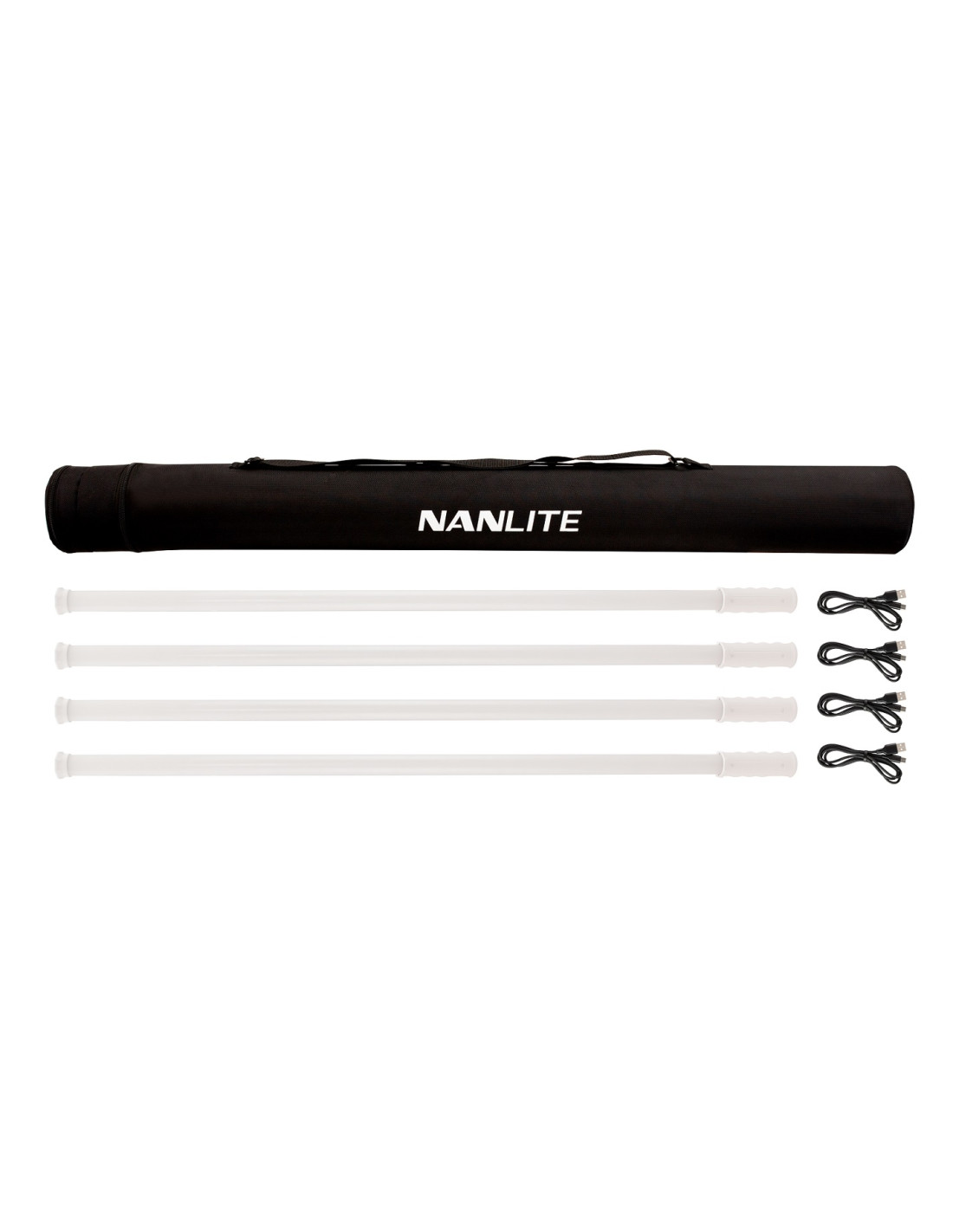 Questo kit include quattro luci LED RGBWW PavoTube T8-7X, quattro cavi UBC Type-C e una borsa per il trasporto rigida con uno scomparto separato per riporre i cavi inclusi.