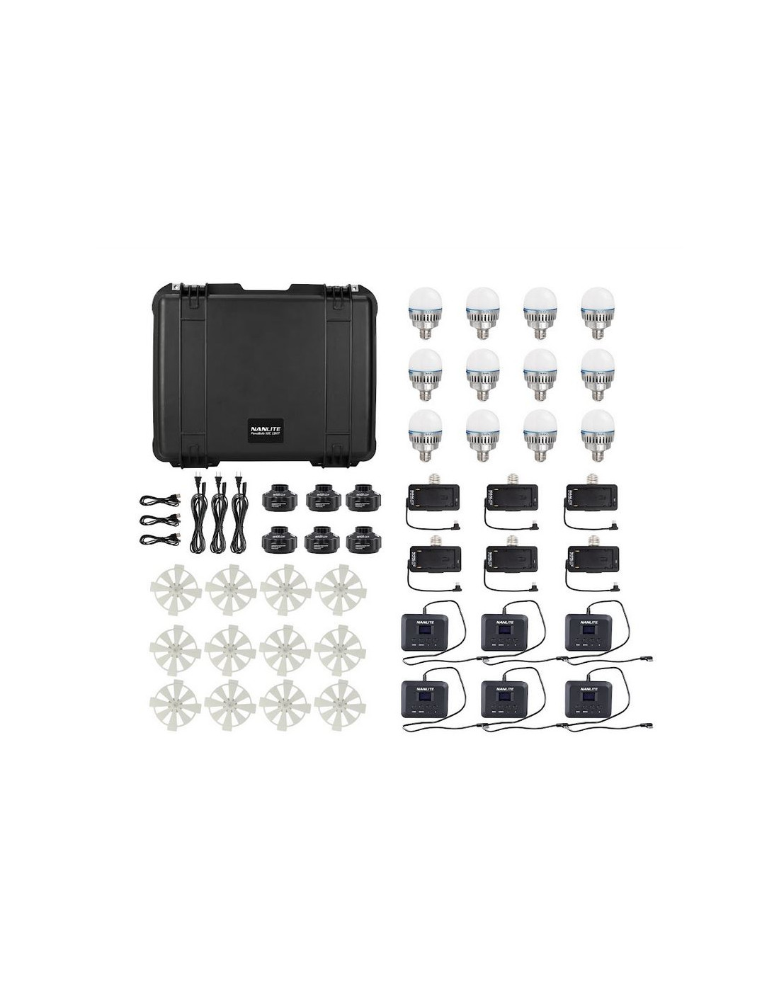 Il kit da 12 luci PB10C12KIT include dodici PavoBulb, sufficienti per creare un ambiente ampio e con luce controllata per le riprese di set di stanze intere.