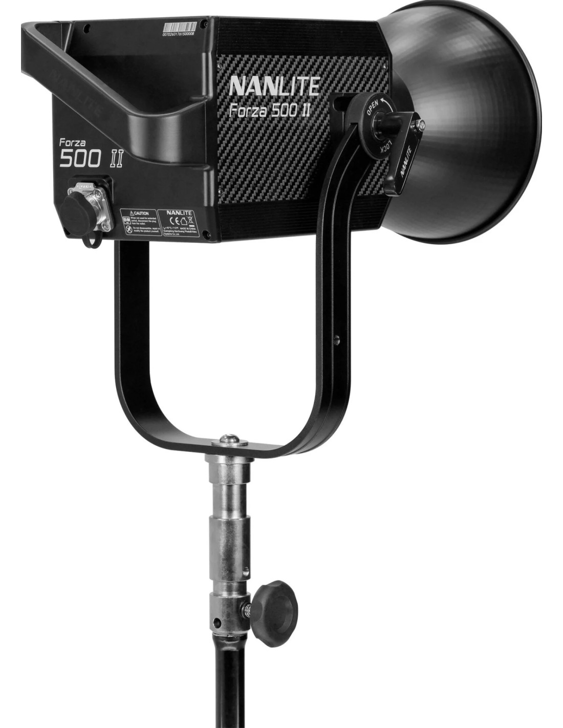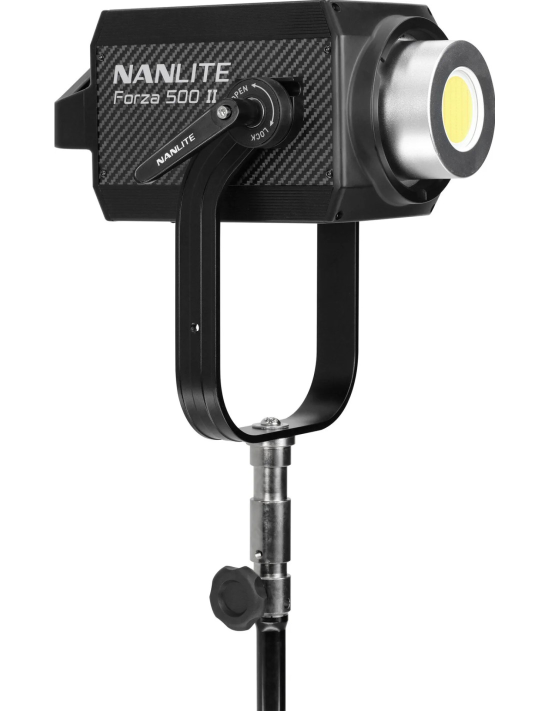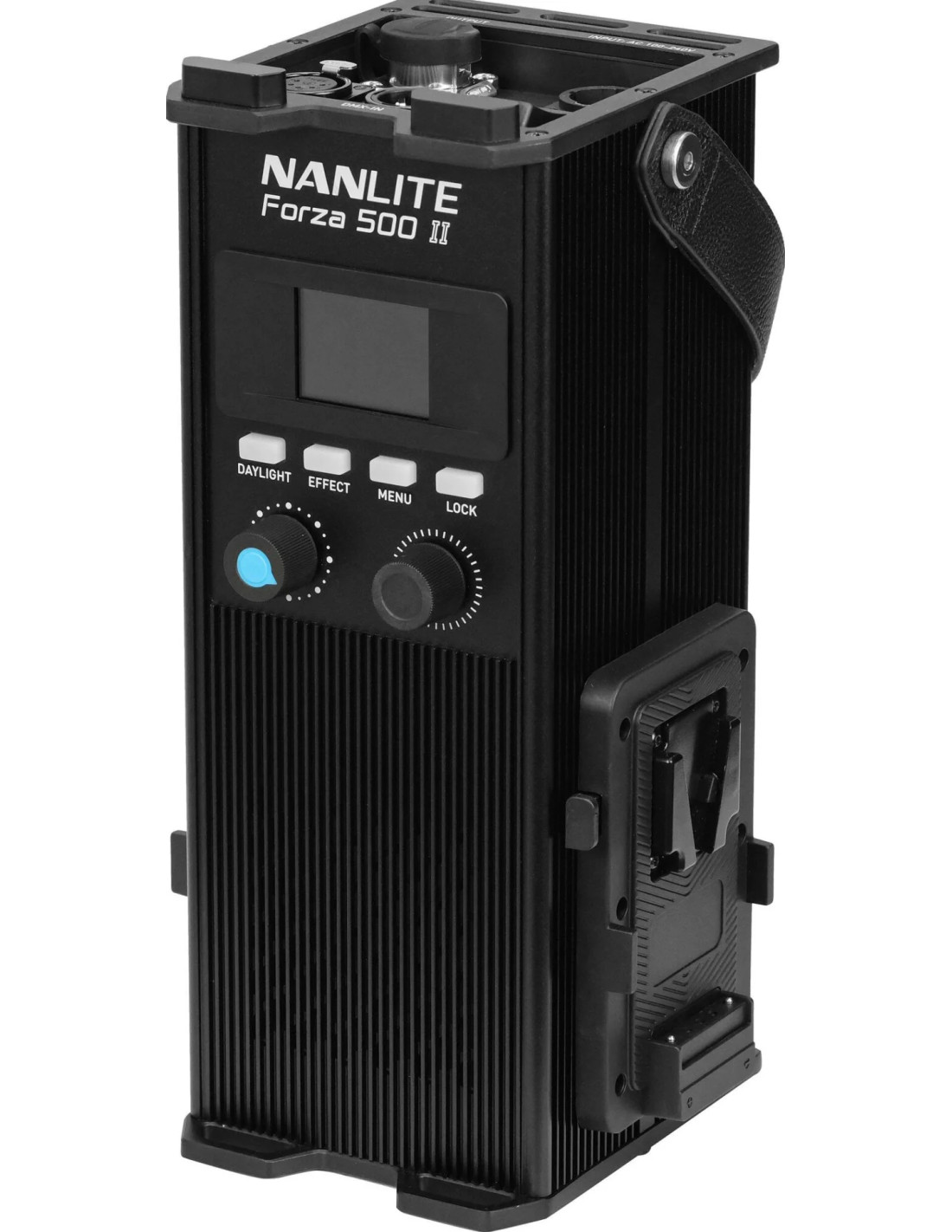 Anche la forcella è stata completamente ridisegnata e consente una rotazione di 360°, è curva per fornire un maggiore raggio di inclinazione con i modificatori di grandi dimensioni, è dotata di un blocco unilaterale continuo per un facile posizionamento, di un attacco a ombrello per maggiori opzioni di modellazione della luce e la base è compatibile sia con i perni baby da 5/8'' che con i perni junior da 1 1/8''. Il ventilatore ha 4 modalità: Smart, Full Speed, Low Speed e Off per un silenzio assoluto. Una valigetta di trasporto imbottita e ridisegnata, con un'imbottitura migliorata, contiene tutto in modo sicuro. La porta USB consente di aggiornare il firmware per aggiungere nuove funzioni in futuro e può alimentare ricevitori DMX wireless (venduti separatamente) o altri dispositivi.