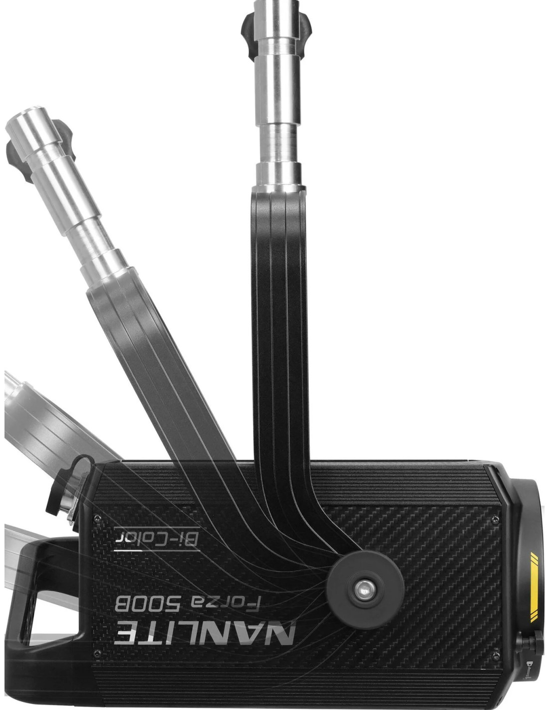 La forcella consente una rotazione di 360°, è curva per fornire un maggiore raggio di inclinazione con i modificatori di grandi dimensioni, è dotata di un blocco unilaterale e continuo per un facile posizionamento, di un attacco a ombrello per maggiori opzioni di modellazione della luce e la base è compatibile sia con i perni baby da 5/8'' che con i perni junior da 1 1/8''. Il ventilatore ha 4 modalità: Smart, Full Speed, Low Speed e Off per un silenzio assoluto. Una custodia da trasporto imbottita e ridisegnata, con un'imbottitura migliorata, contiene tutto in modo sicuro. La porta USB consente di aggiornare il firmware per aggiungere nuove funzioni in futuro e può alimentare ricevitori DMX wireless (venduti separatamente) o altri dispositivi.