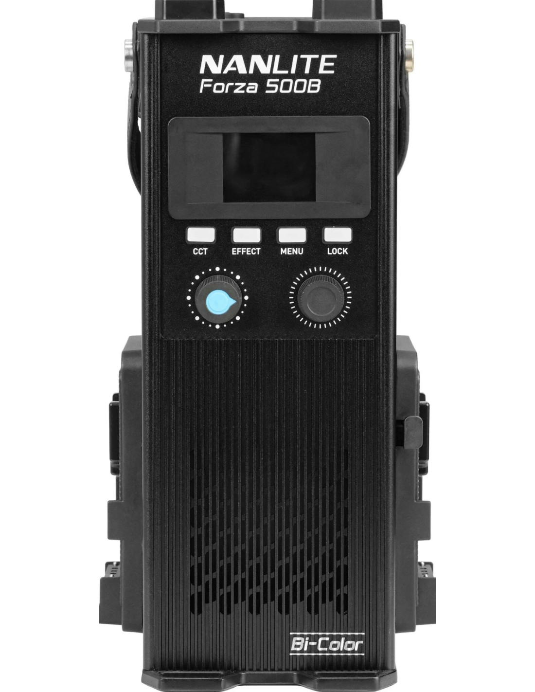 Il proiettore LED bi-colore Nanlite Forza 500B II offre tutti gli straordinari vantaggi del Forza 500 II, come la testa leggera e compatta, l'unità di controllo ridisegnata e l'uscita eccezionalmente potente, oltre alla versatilità di una gamma CCT regolabile di 2700K-6500K. È stato costruito per la produzione professionale con una struttura resistente, opzioni di controllo per Bluetooth, 2.4G e DMX/RDM e un COB protetto e coperto da vetro smerigliato. L'unità di controllo aggiornata può funzionare in modo efficiente con batterie da 26V o 14,4V-14,8V V-Mount (vendute separatamente). Il 500B II fornisce una luce estremamente precisa e consente di regolare il passaggio dal verde al magenta di +/- 80, grazie alla sorgente LED WW(RG) e alla camera di miscelazione della luce.