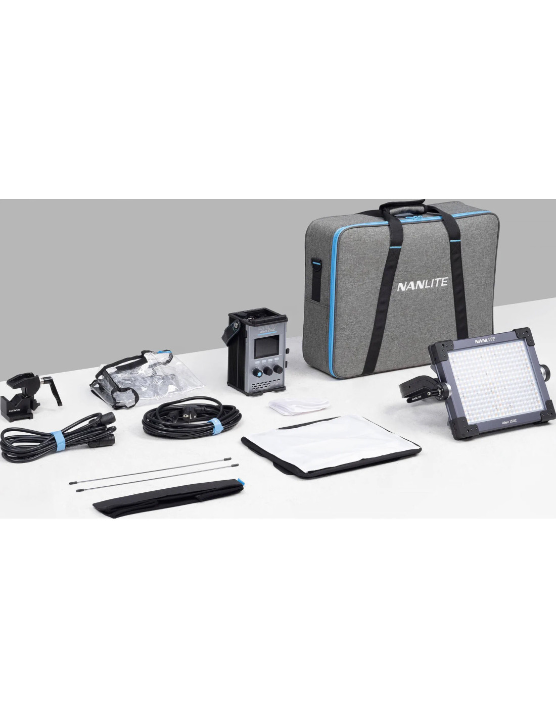 I direttori di produzione possono montare facilmente l'Alien 150C sugli stativi, mantenendo l'unità di controllo inclusa in basso per facilitare l'accesso ai comandi. A questo proposito, l'unità offre ingressi e uscite DMX e può funzionare anche tramite CRMX LumenRadio, Bluetooth, 2.4G e RDM. Per quanto riguarda l'alimentazione, funziona in corrente alternata, con attacco a V o con sorgenti esterne a 24V. Infine, gli accessori inclusi, come la griglia egg crate, i diffusori, il morsetto per lo stativo, la copertura antipioggia e la custodia, assicurano che il pannello Nanlite Alien 150C venga utilizzato al meglio.