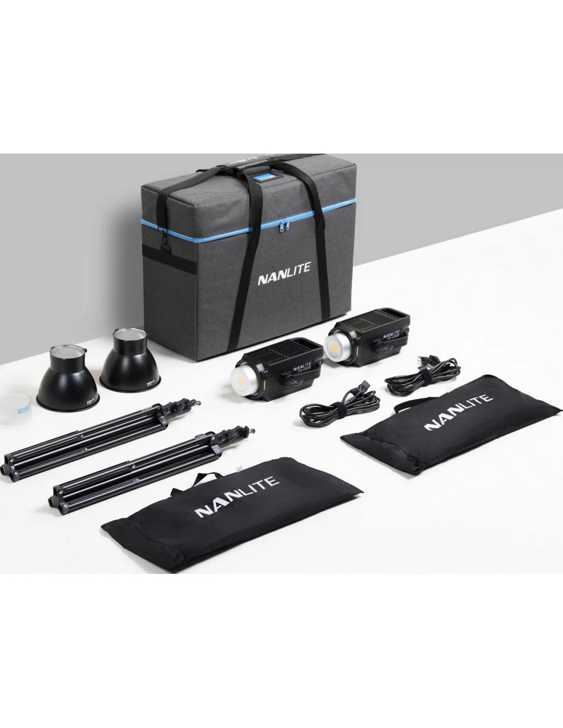 Questo kit è composto da due Led FS-150B, due stativi LS-150-5/8 e la borsa nuova Nanlite.