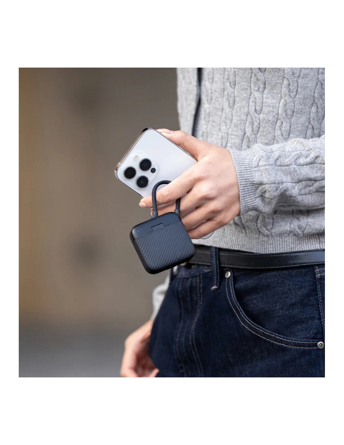 Il cavo dati integrato a doppia funzione funge anche da cordino per il trasporto a mano o per il fissaggio allo zaino. Il cavo interno a 9 conduttori supporta trasferimenti di dati ad alta velocità, mentre lo strato esterno intrecciato offre resistenza ai graffi e maggiore durata. Nel frattempo, un design a scatto si blocca automaticamente e in modo sicuro quando il cavo viene inserito, impedendo distacchi accidentali. È sufficiente premere verso il basso per sbloccarlo e utilizzarlo come cavo dati.