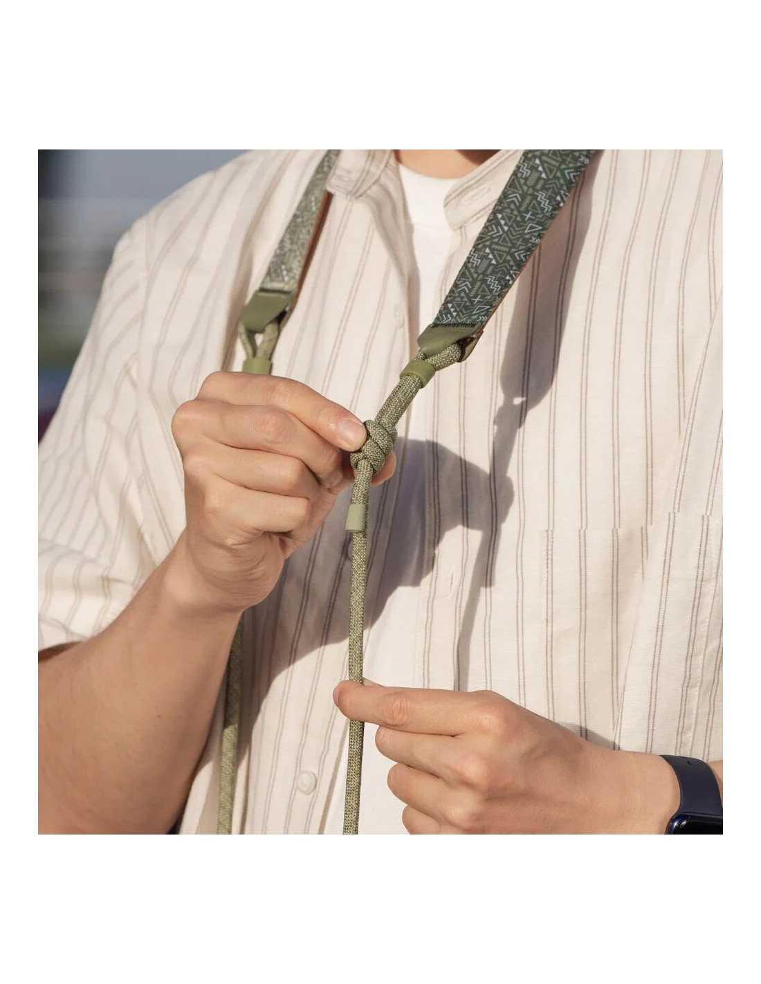 Indossate comodamente la vostra fotocamera al collo o a tracolla con questa tracolla per fotocamera Air in Tribal Geometric di PGYTECH. Ha una lunghezza regolabile da 94 a 109,2 cm ed è realizzata in nylon ecologico 600D traspirante. Il cordino in Dyneema intrecciato è dotato di connettori rapidi a perlina che consentono di scollegare rapidamente la fotocamera quando necessario. Il cordino supporta fino a 90 kg e deve essere sostituito quando lo strato giallo diventa visibile.