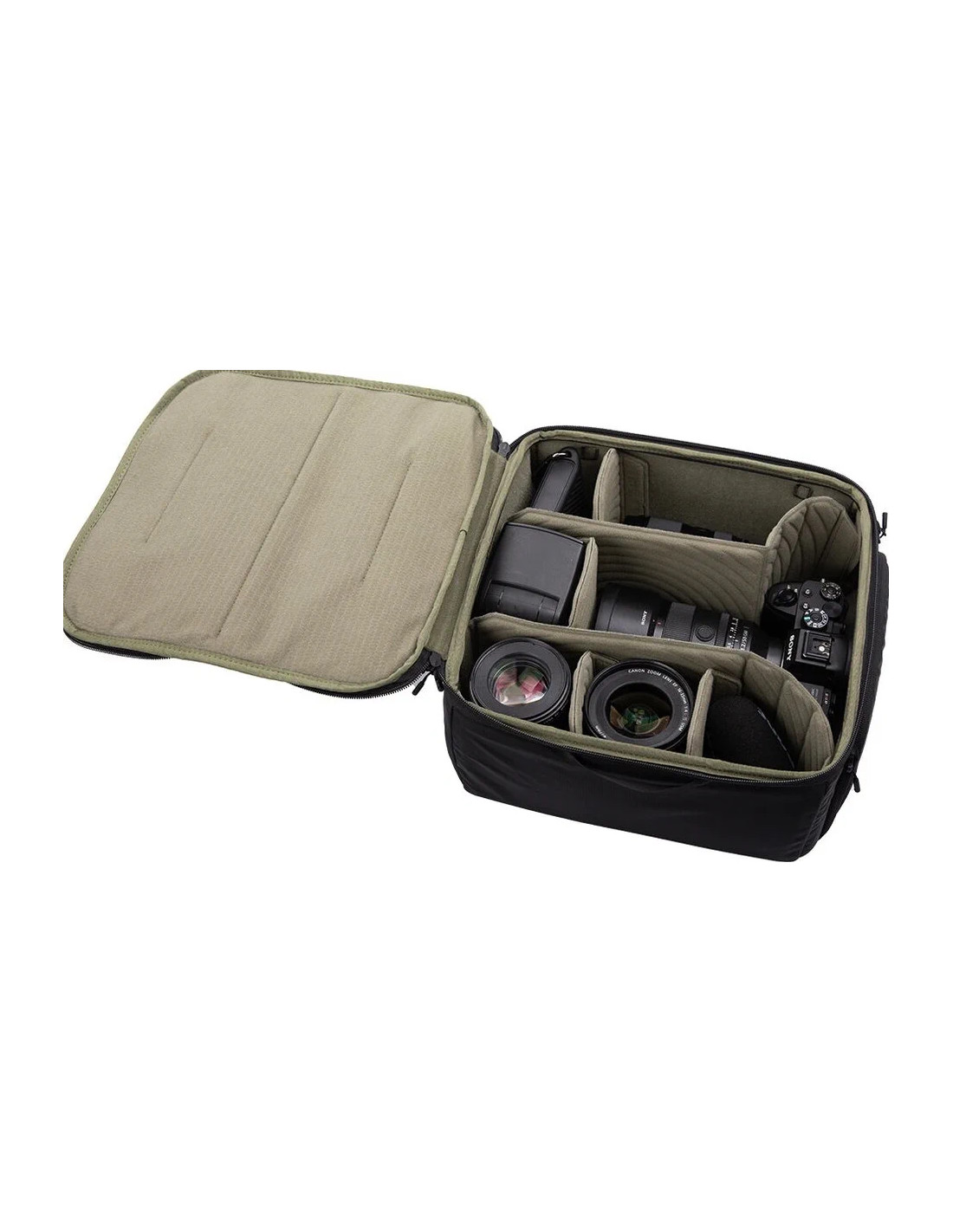 Tenete il vostro kit di fotocamere organizzato e protetto nello zaino OnePro Flex utilizzando questo piccolo inserto nero per fotocamere di PGYTECH. I divisori possono essere personalizzati per contenere la fotocamera e gli obiettivi o un drone compatto con gli accessori.