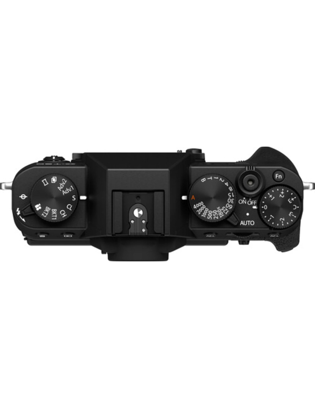 - La piastra superiore incorpora una serie di quadranti e leve per un controllo rapido e intuitivo sulle impostazioni di esposizione, tra cui una ghiera della velocità dell'otturatore che offre la regolazione diretta della velocità dell'otturatore, una ghiera di modalità e una ghiera di compensazione dell'esposizione per scegliere +/- 3 EV in 1/ 3 passi, mentre una posizione della ghiera di comando espande la gamma a +/- 5 EV per un ulteriore controllo.