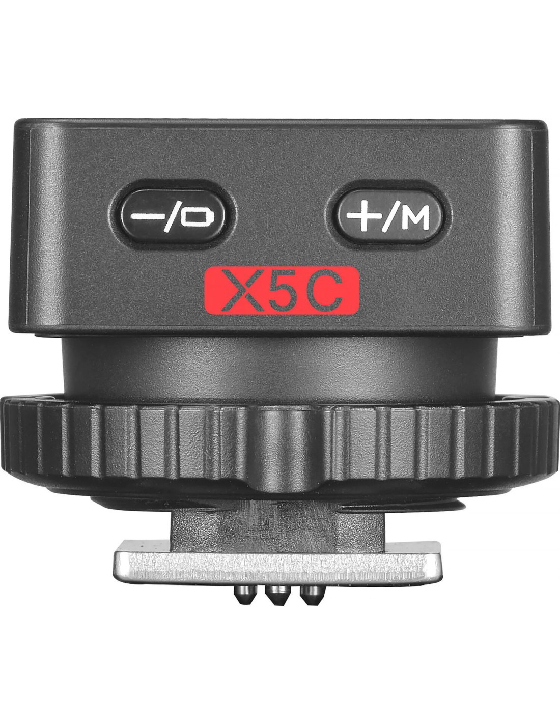 When the separately available iT32 and the X5C are used together (iT32+X5 setting), the X5C is also capable of sync triggering other Godox flashes. As a sender unit with the optional iT32, the X5C is able to control various receiver units that are a part of Godox's wireless X system, such as AD100Pro II, AD200Pro II, AD600Pro II, AD600BM II, iT30Pro, V100, V480, and Lux Master models.