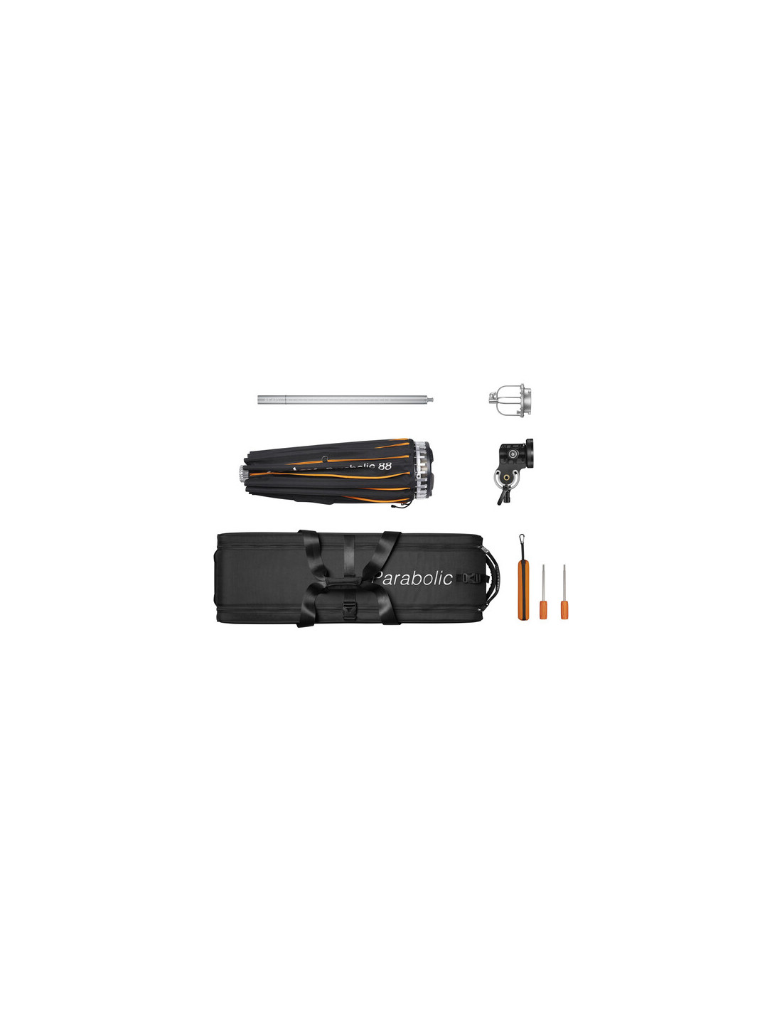Ideale per la moda e i ritratti, il riflettore parabolico 88 di Godox presenta un interno argentato altamente riflettente con un diametro esterno di 35,4". La forma parabolica offre riflessi netti e speculari fornendo anche un'ampia fonte di luce che avvolge il soggetto.