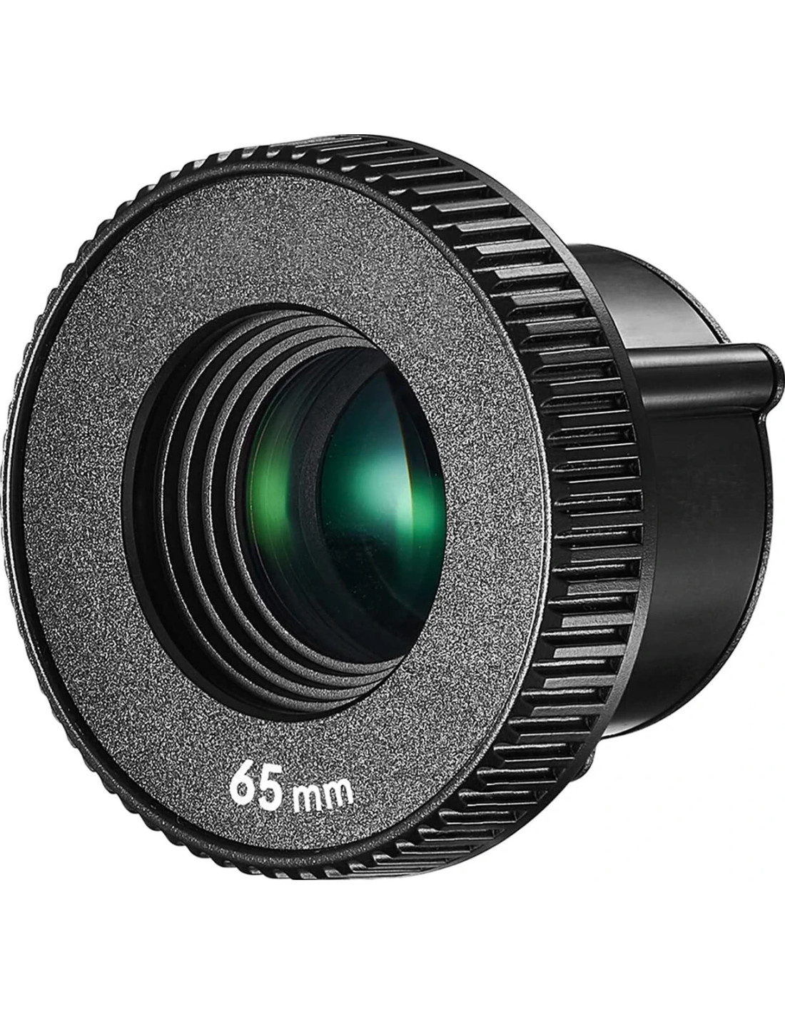 La lente Godox da 65 mm è progettata per l'attacco di proiezione AK-R21 e modifica l'angolo del fascio di luce trasmesso attraverso l'attacco. Disponibile in tre diverse configurazioni, questa lente da 65 mm fornisce un'angolazione media del fascio di luce quando si utilizza l'attacco.
