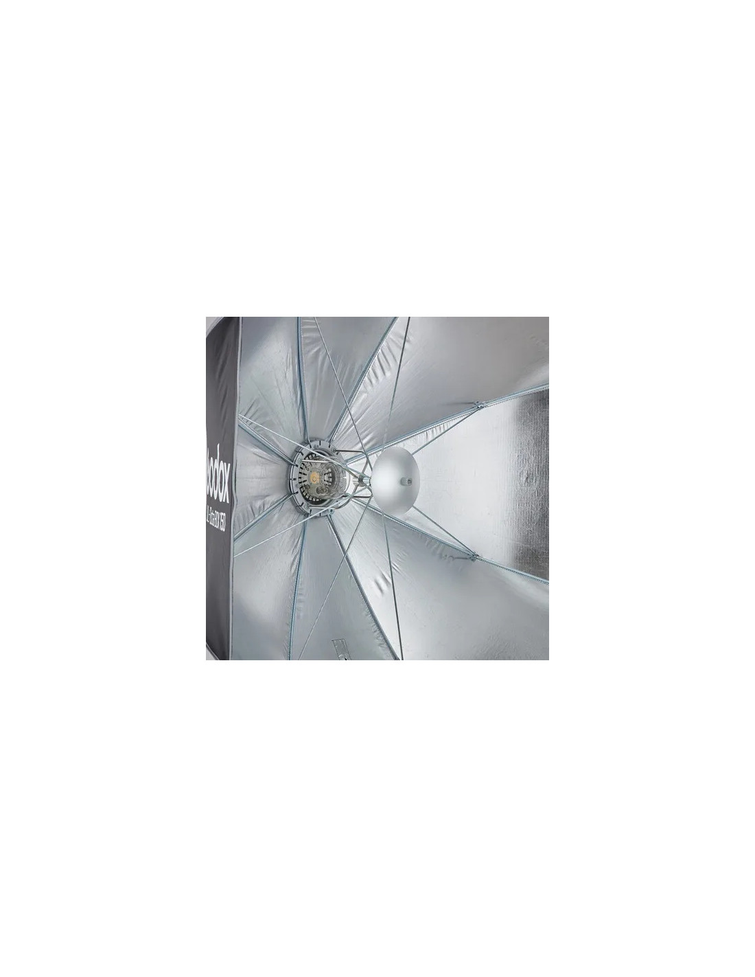 Questo softbox è dotato di una piastra deflettrice che, se necessario, si trasforma in un modificatore in stile beauty dish. Ciò consente di ottenere un effetto simile a quello di un beauty dish piuttosto che di un softbox. È inoltre dotato di un deflettore interno bianco e di un diffusore esterno per un'illuminazione morbida e uniforme.