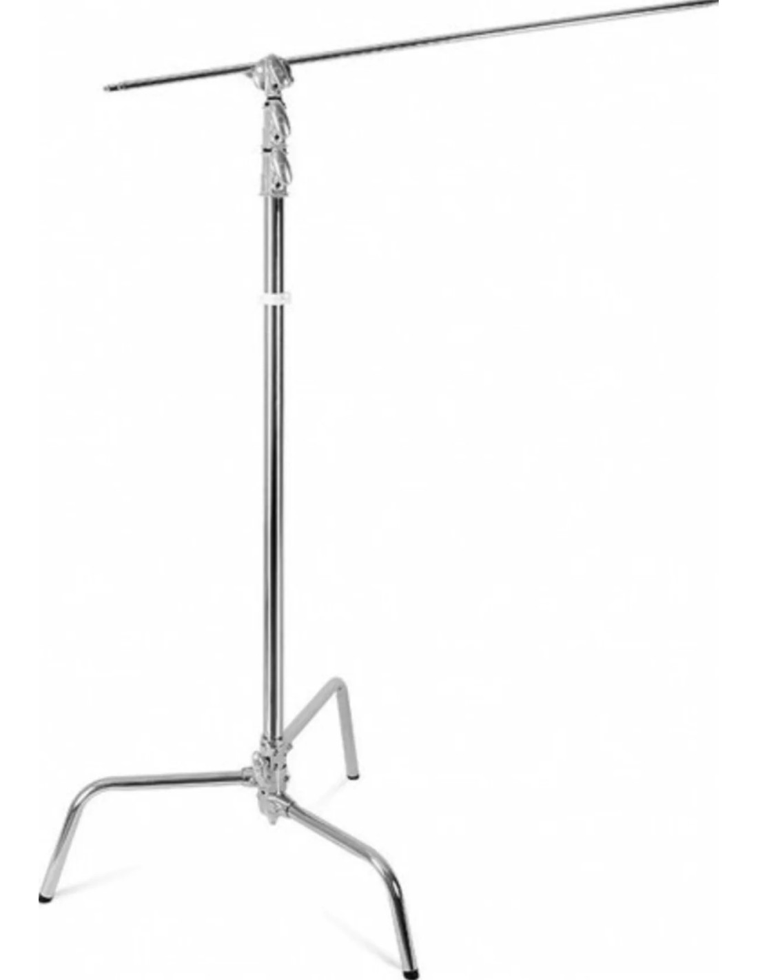 270CS Stativo a Giraffa con finitura in argento con braccio, impugnatura e base a tartaruga rimovibile di Godox combina un resistente cavalletto a C con un braccio da 127,5cm e un set per impugnatura per un uso versatile, all'interno o all'esterno dello studio. Lo stativo ha un baricentro basso, adatto per il montaggio di attrezzature pesanti senza ribaltarsi. Le gambe sono caratterizzate da un design sfalsato, che consente il posizionamento ravvicinato dei cavalletti a C e sono sagomati per l'uso di sacchi di sabbia.